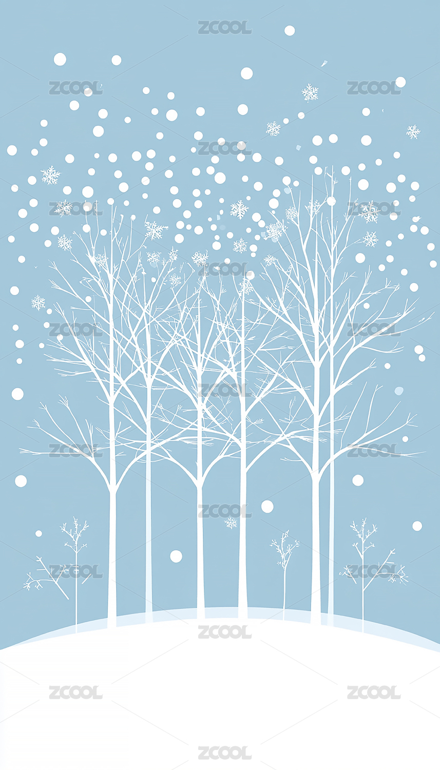 扁平风,冬季,冬天,雪景,树木,雪花,蓝色,插画,下雪