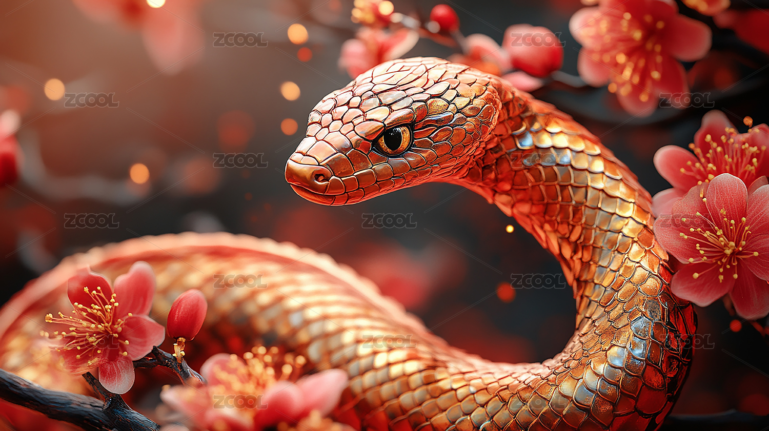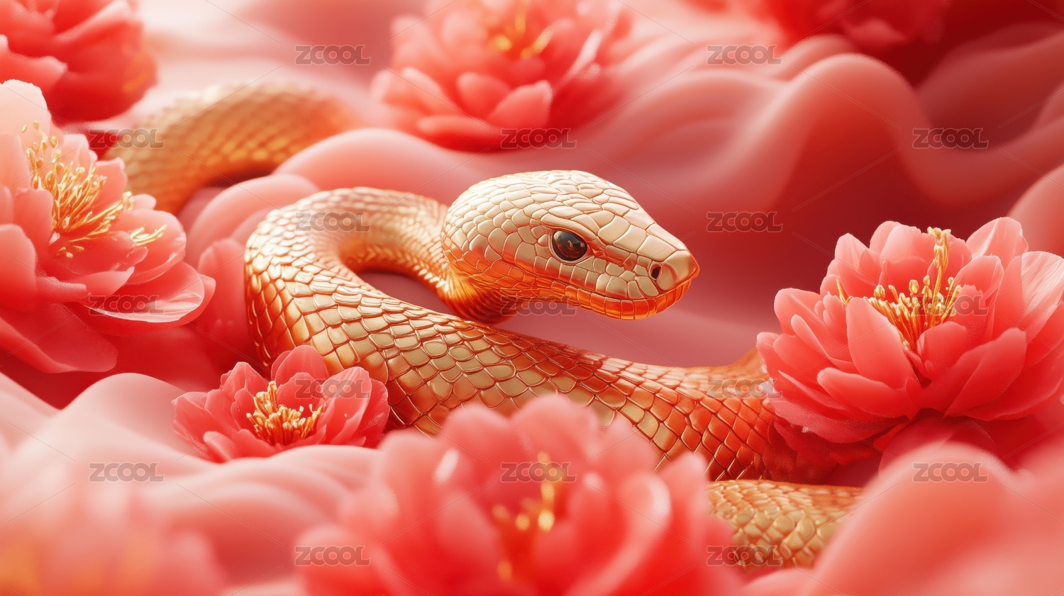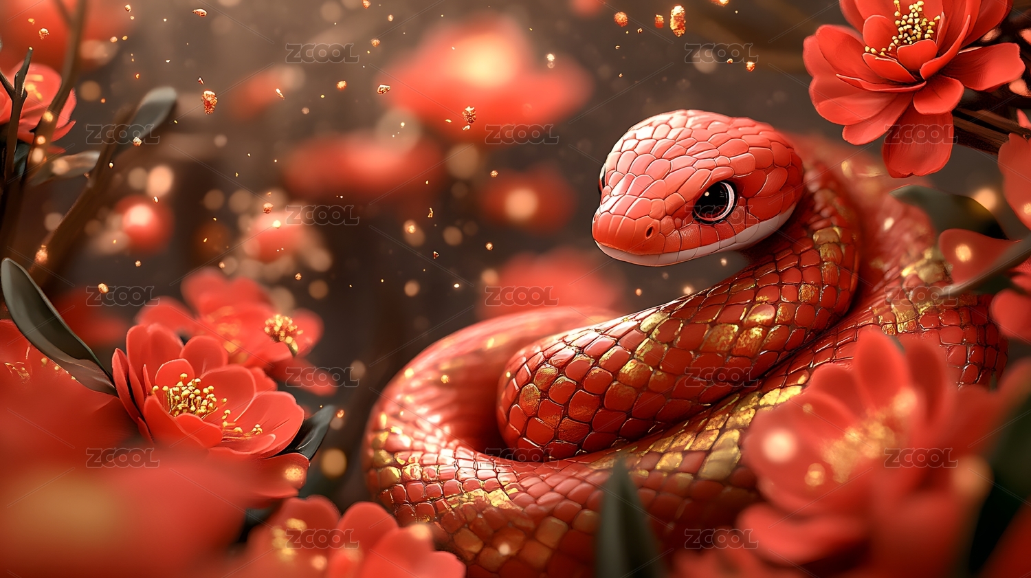 红色,背景,花朵,立体,小蛇,美丽,风景,花卉,蛇,生肖蛇