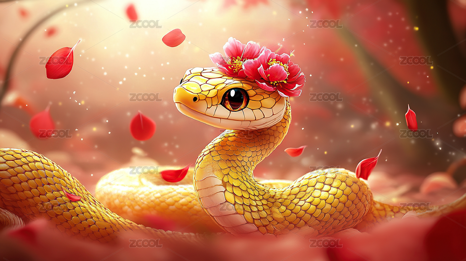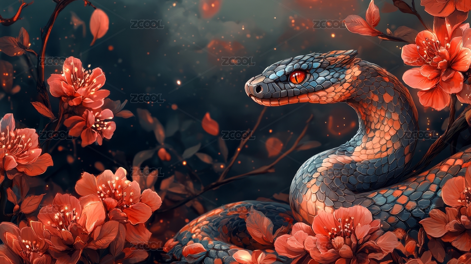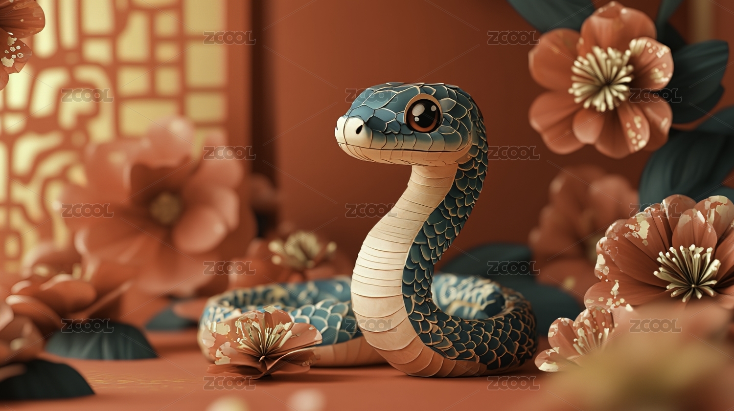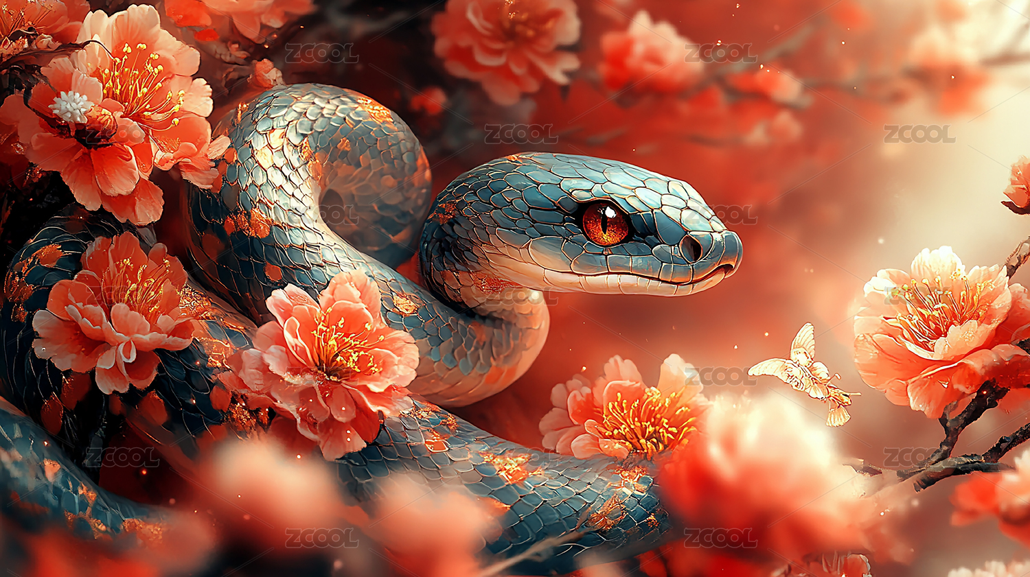 红色,背景,花朵,立体,小蛇,美丽,风景,花卉,蛇,生肖蛇