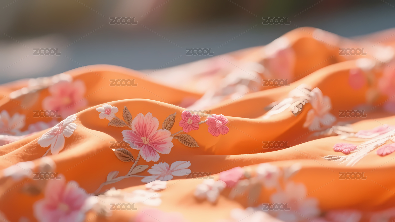 橙色布料上的花卉图案