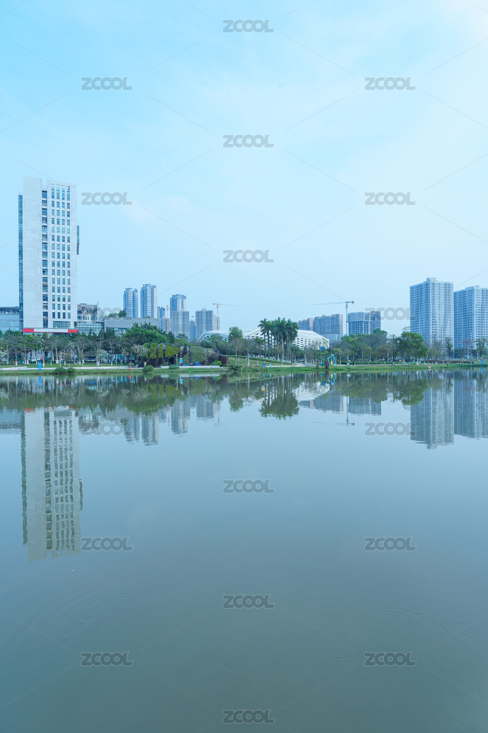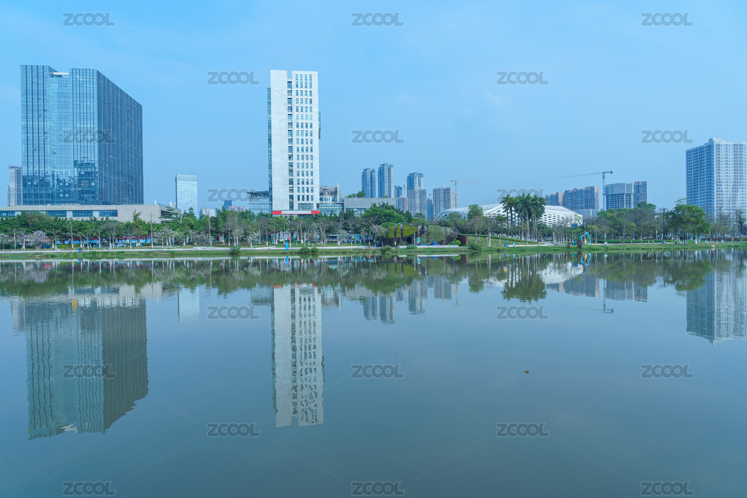 广州南沙蕉门公园蕉门河岸城市摩天大楼建筑