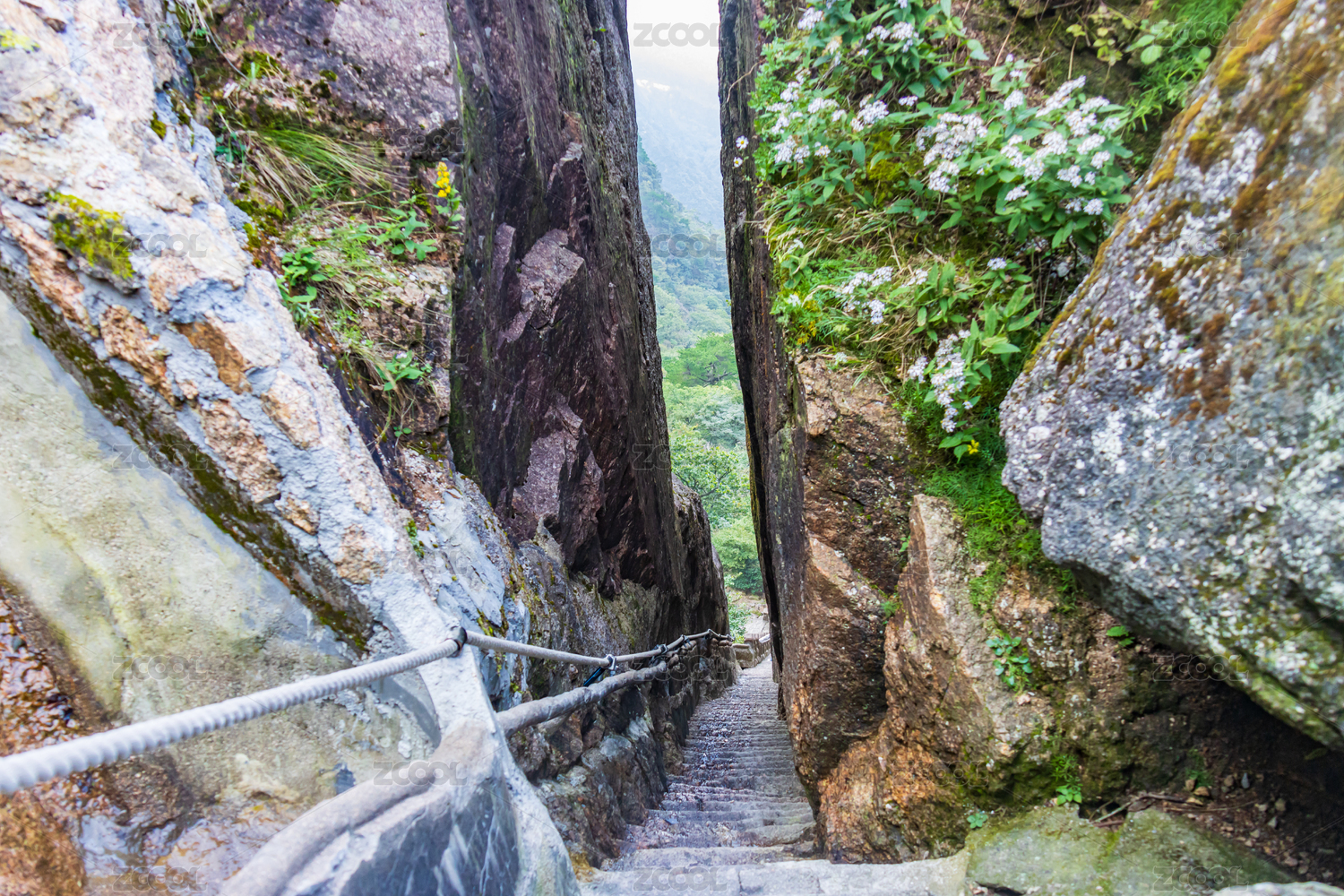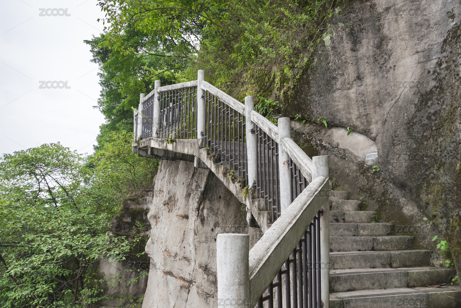 中国福建省武夷山国家风景名胜区栈道观景点建筑环境景观
