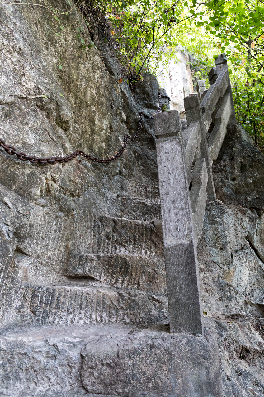 山东枣庄冠世榴园风景区青檀寺石阶秋色