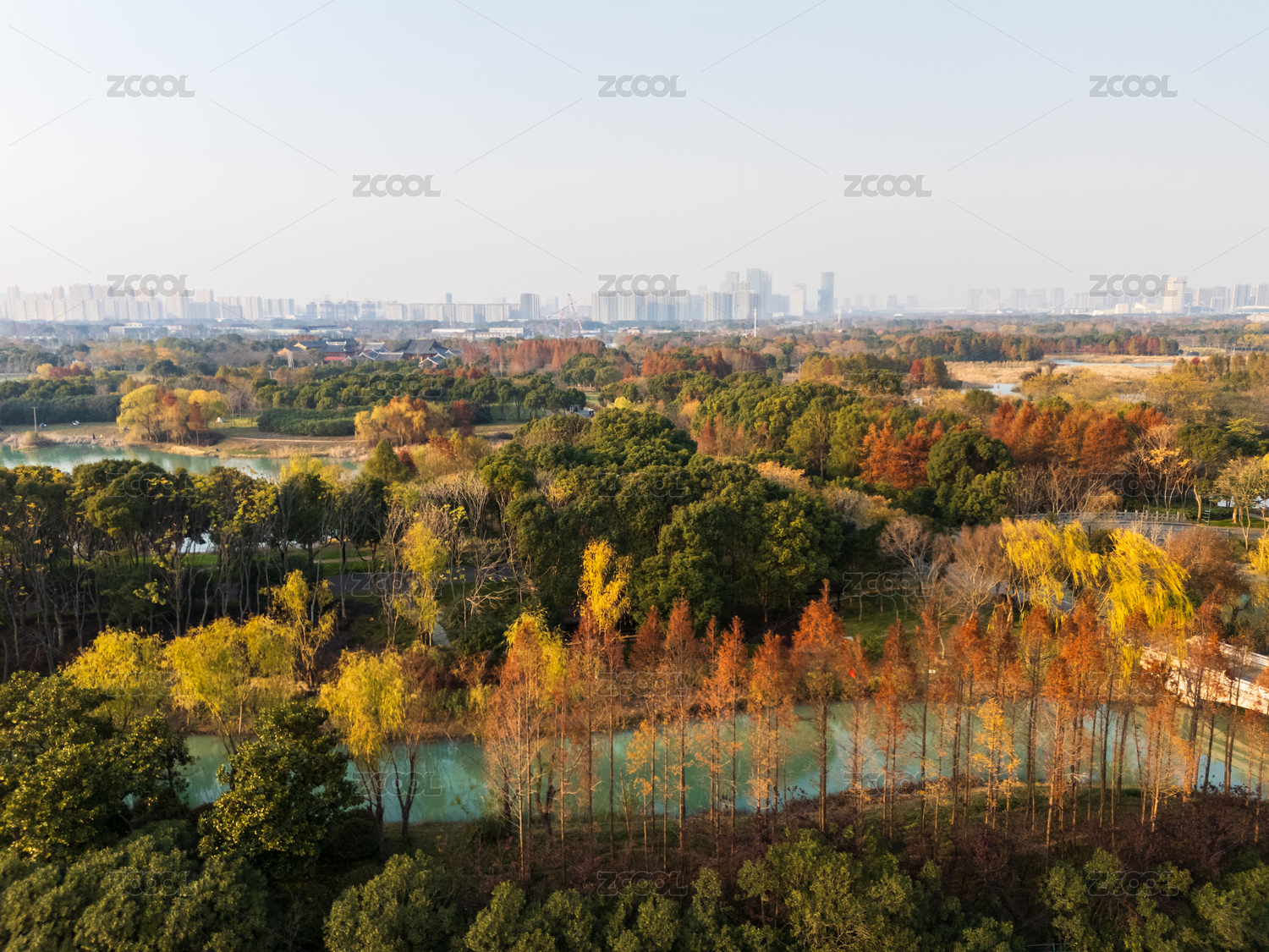 长沙洋湖湿地公园航拍秋景