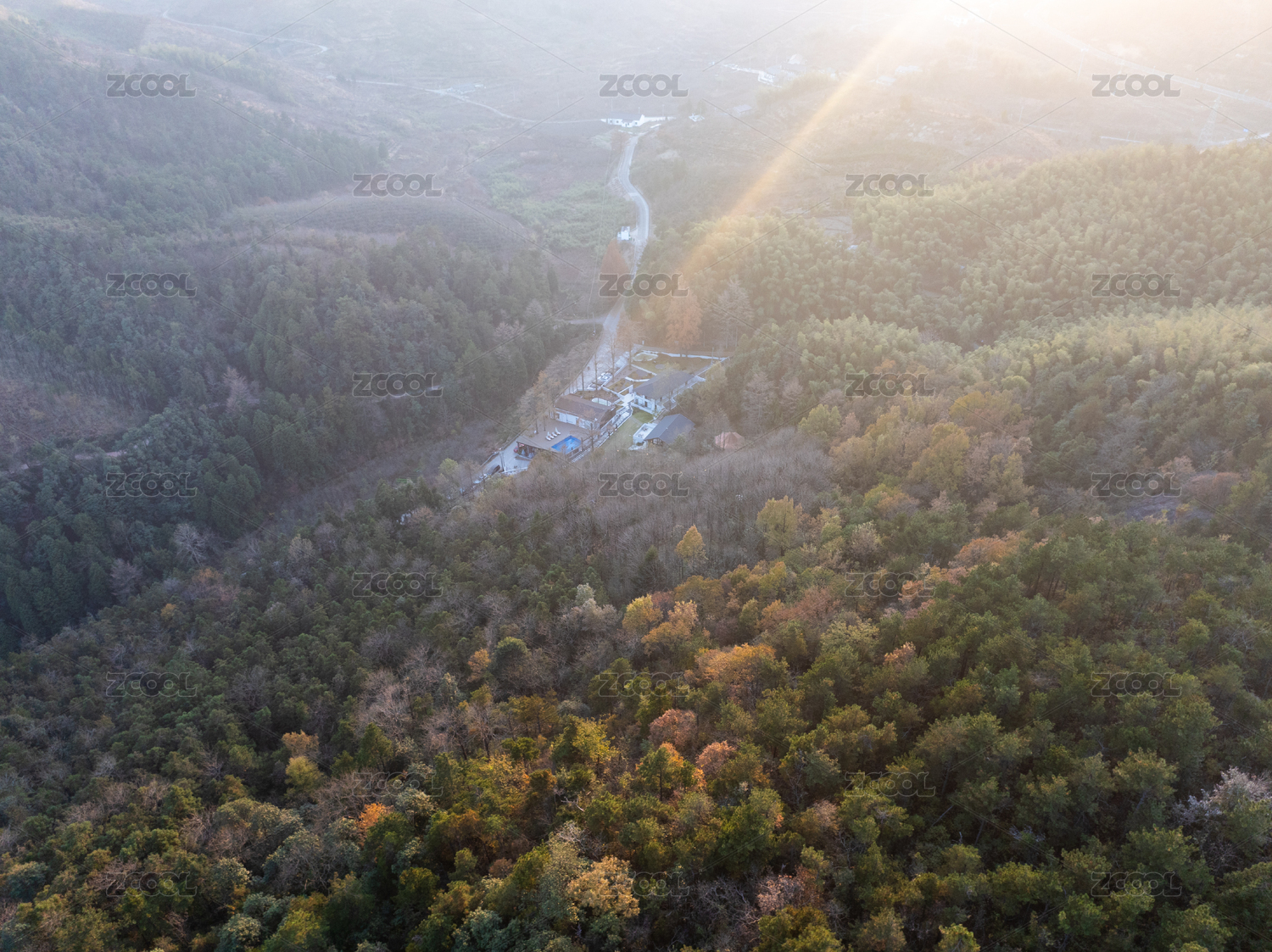 空中俯瞰山林度假屋