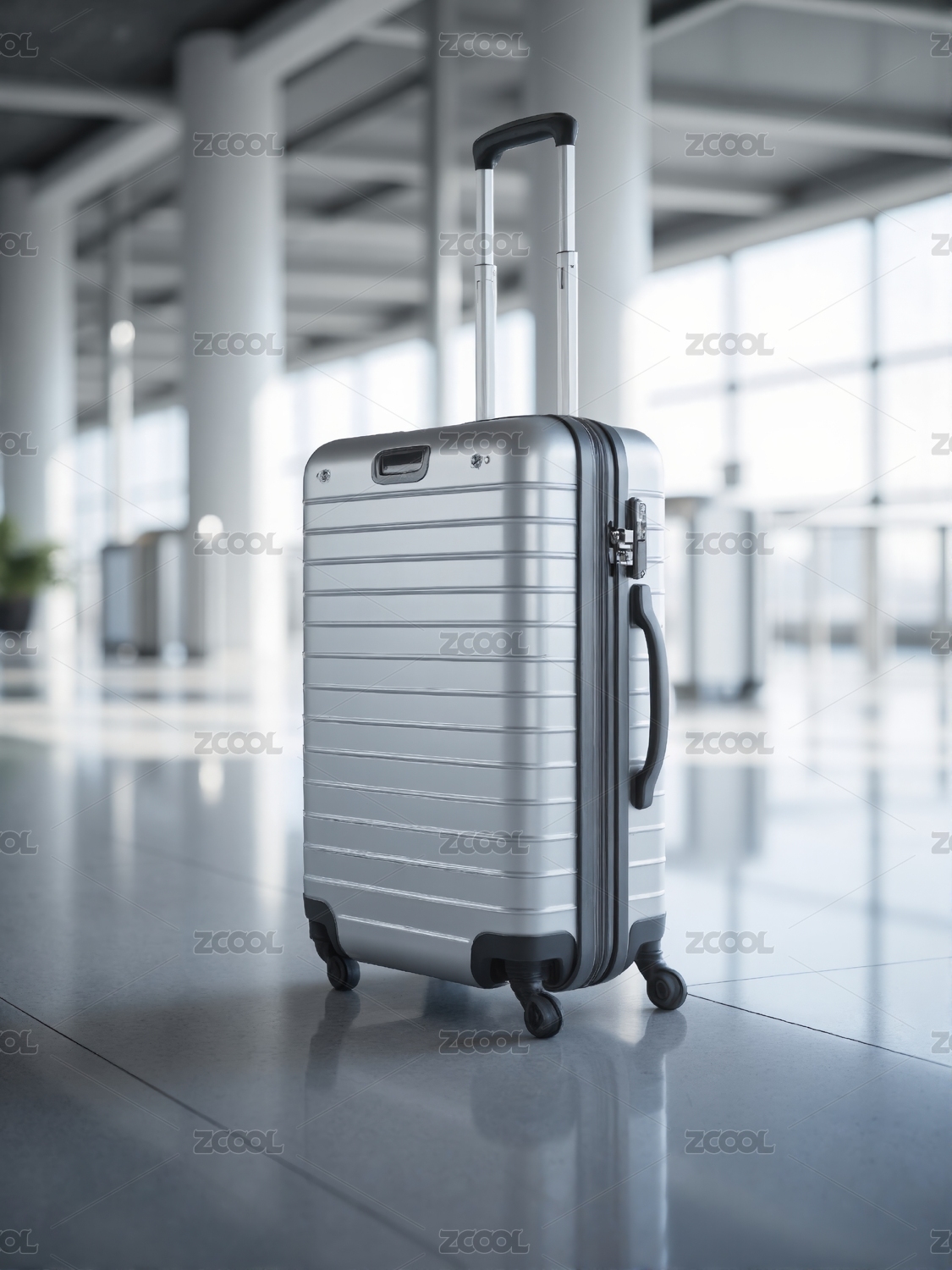 机场大厅内的银色行李箱