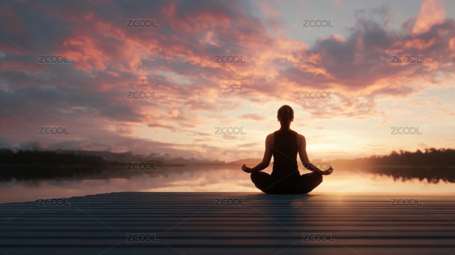 健身,户外,瑜伽,女性,晨曦,宁静,健康,美丽