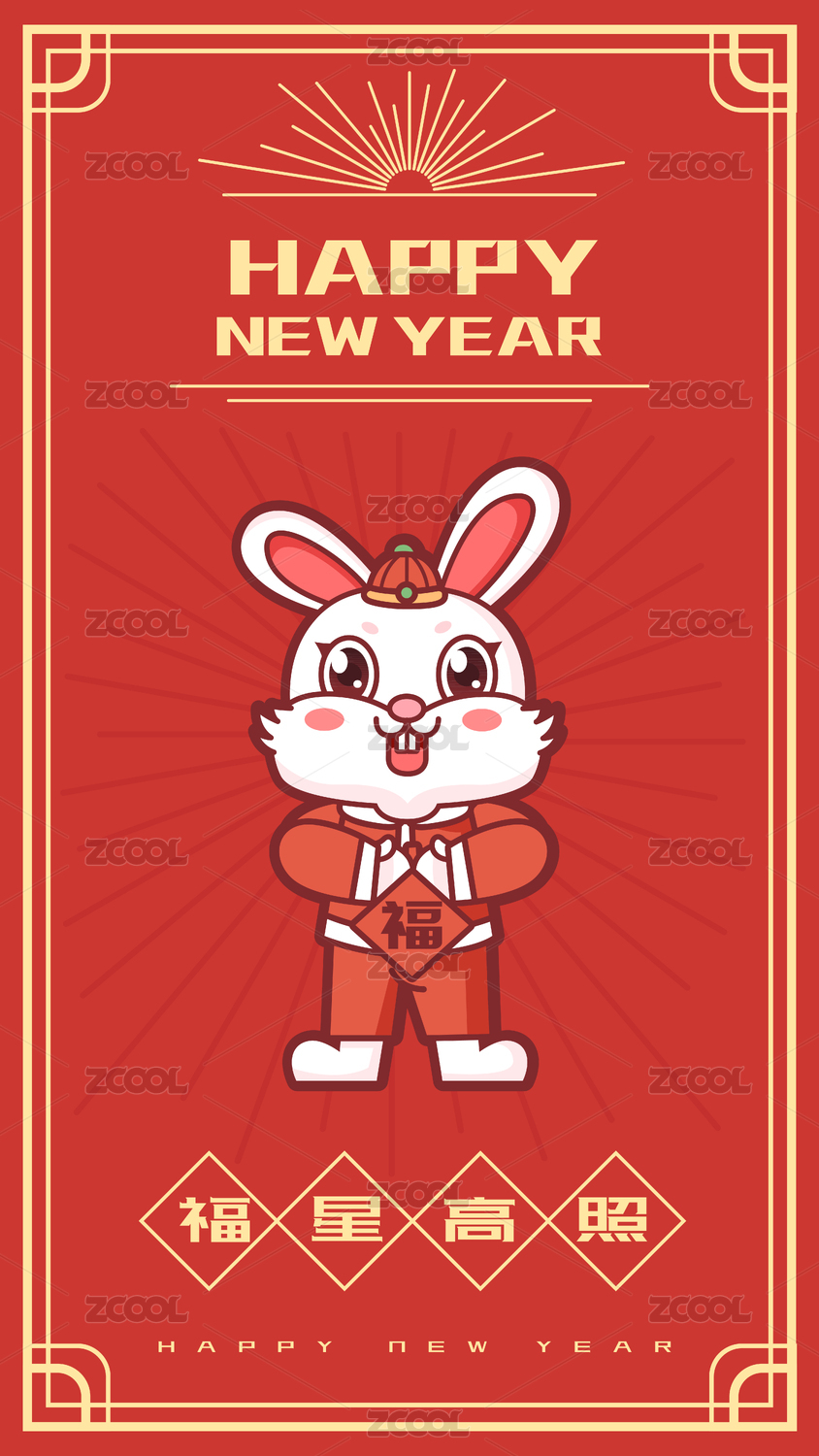 春节五谷丰登矢量插画竖幅海报红包封面闪屏