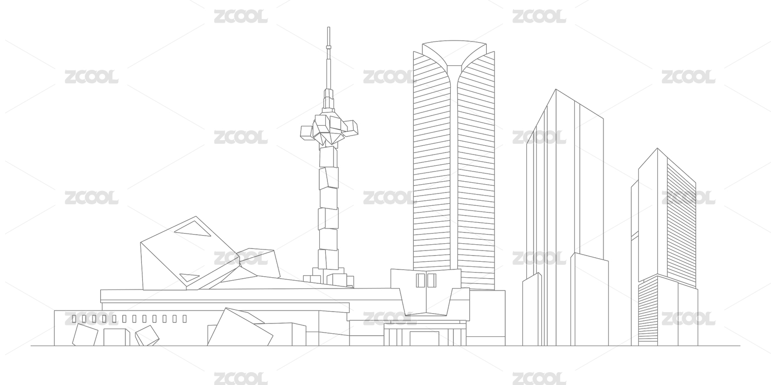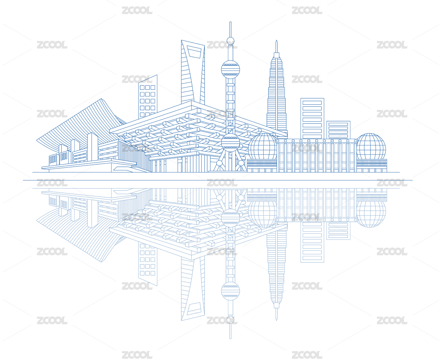 东方明珠,中华艺术宫,大剧院,东方体育中心,地标,建筑,矢量,描边,上海,线性