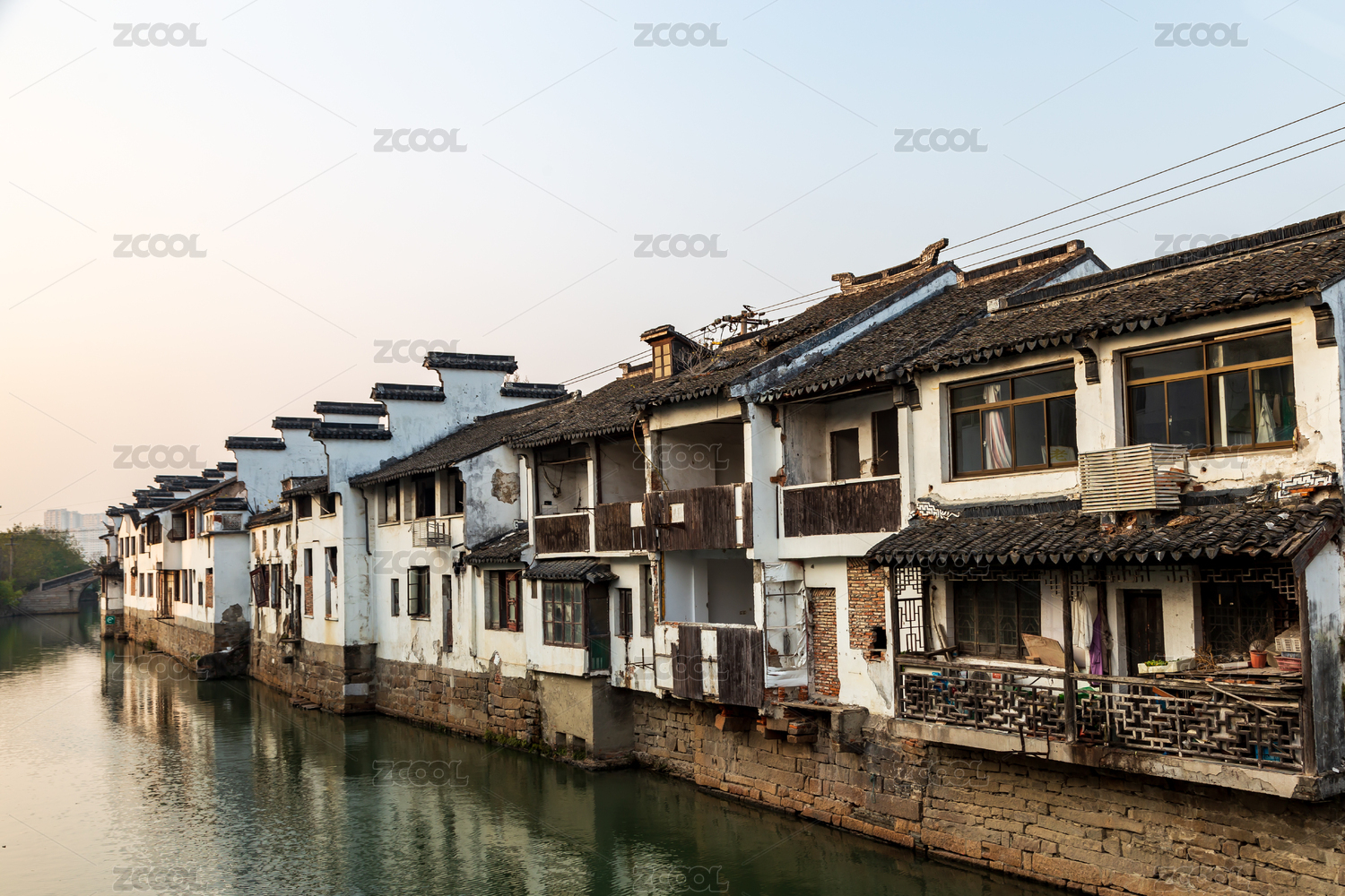 上海罗店古镇|阳光照亮河边的徽式复古建筑