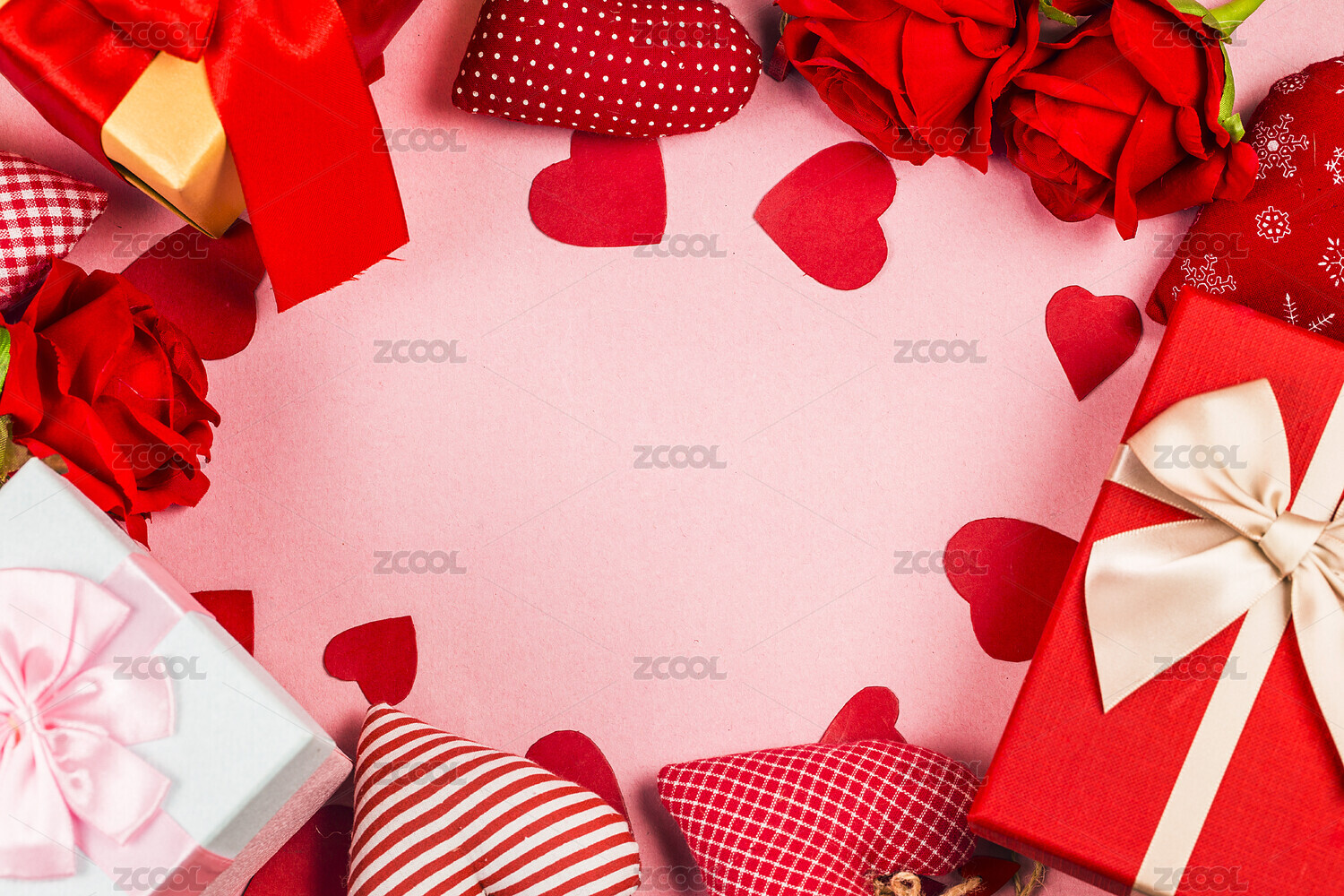 爱心和玫瑰花留白情人节背景