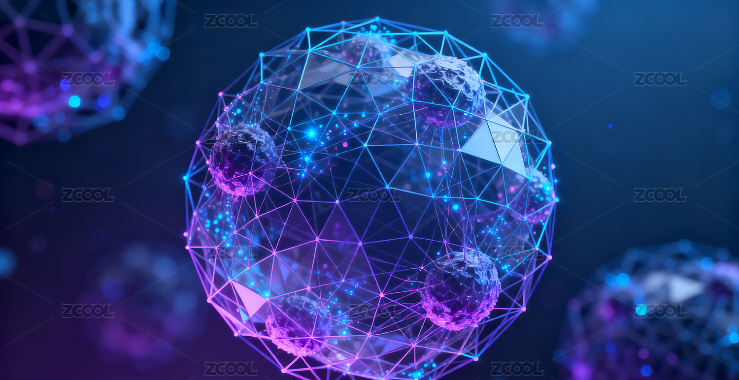 科技感3D渲染原子核结构背景