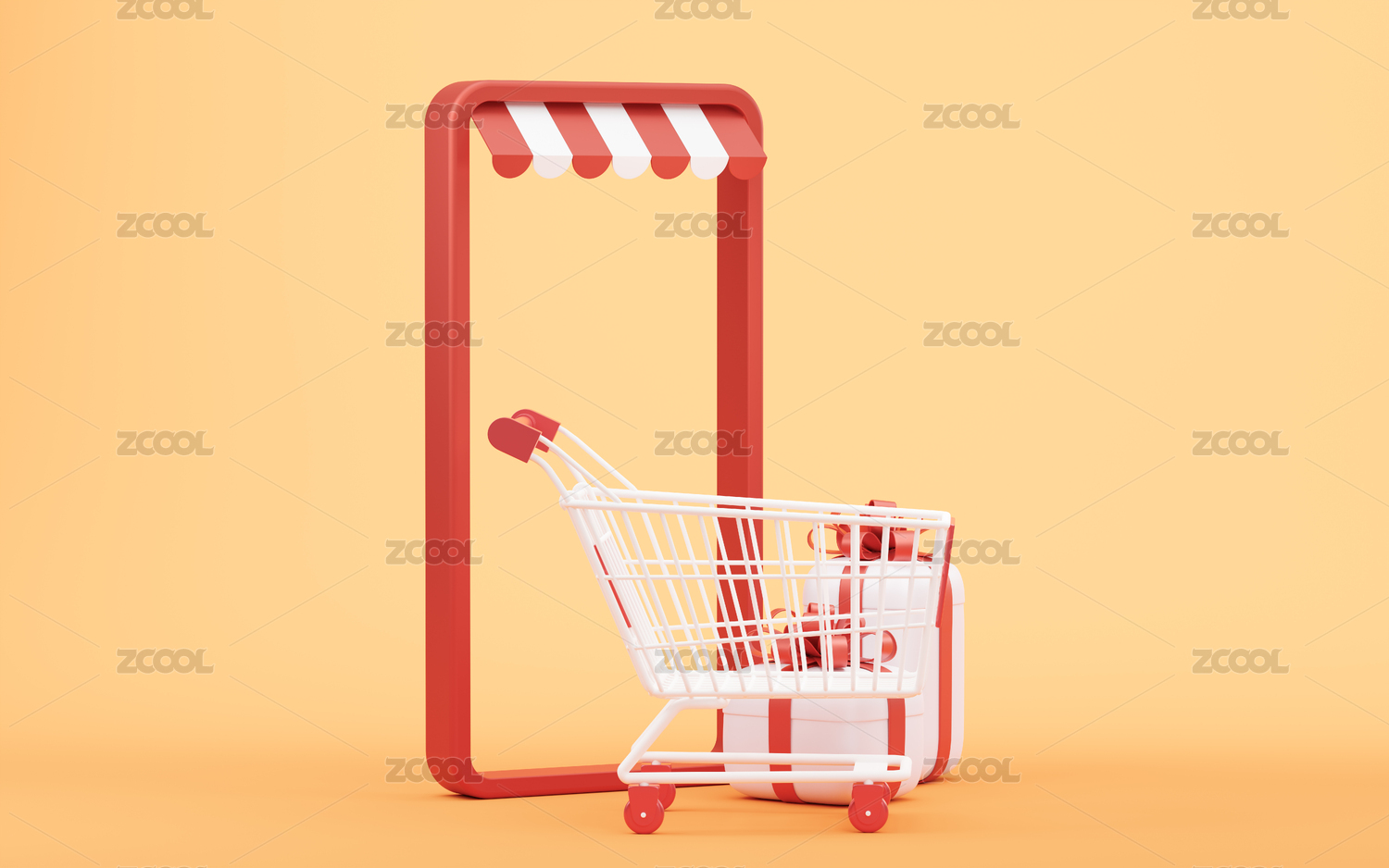 购物车电商概念3D渲染