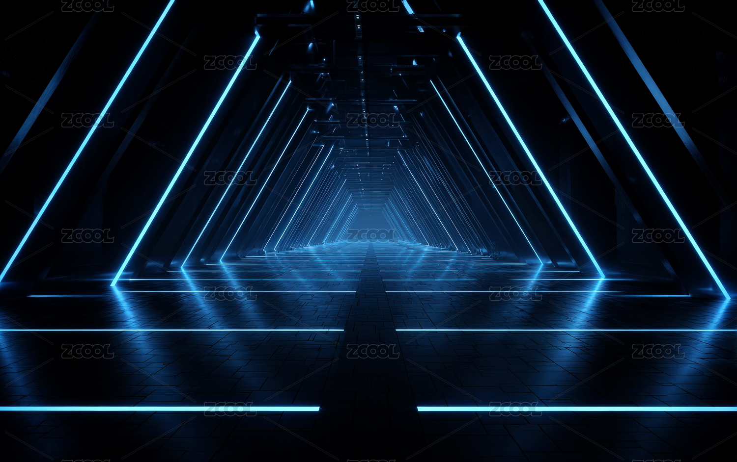 有发光线条条形灯组成的几何形状科技感通道隧道背景素材