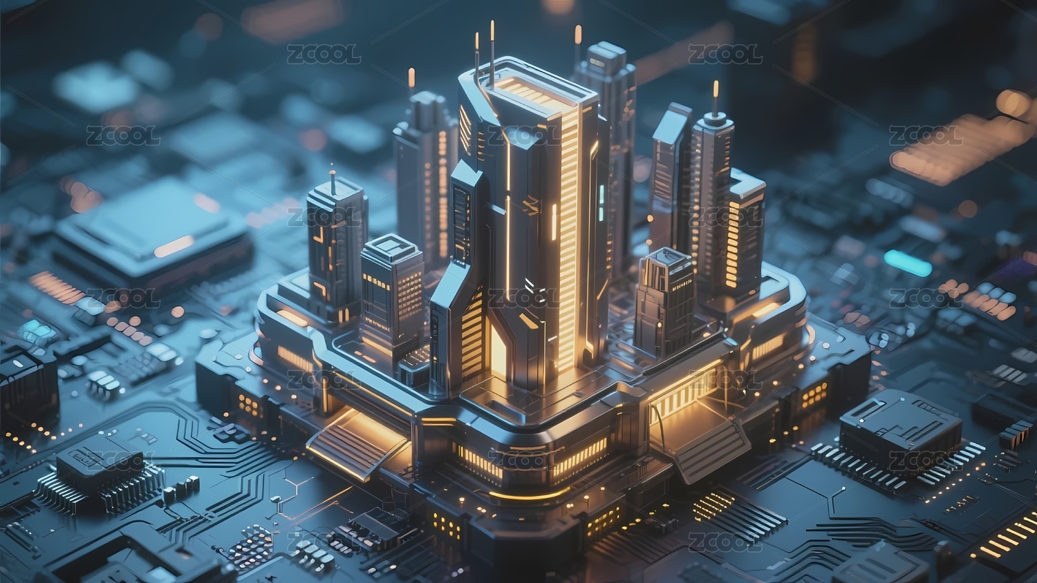 3D未来城市芯片科技背景