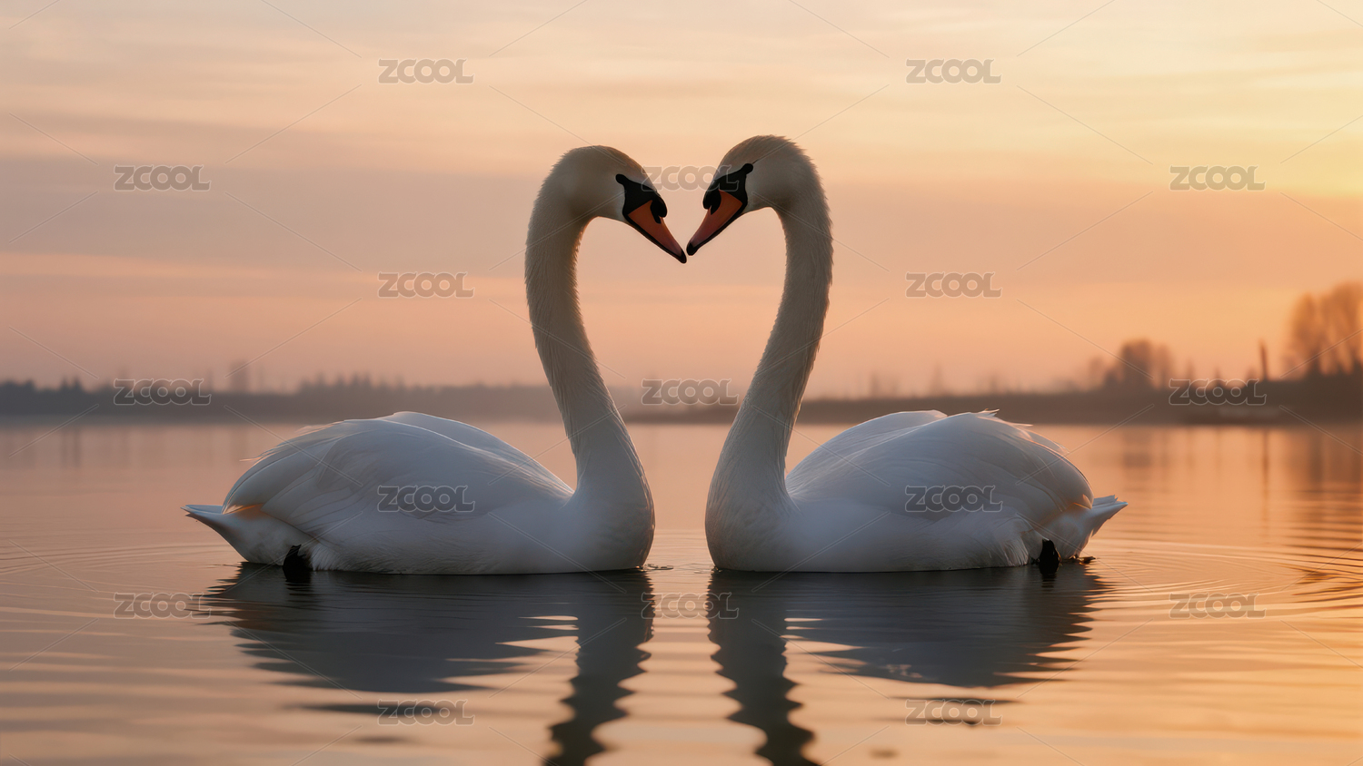 双天鹅交颈形成爱心形状