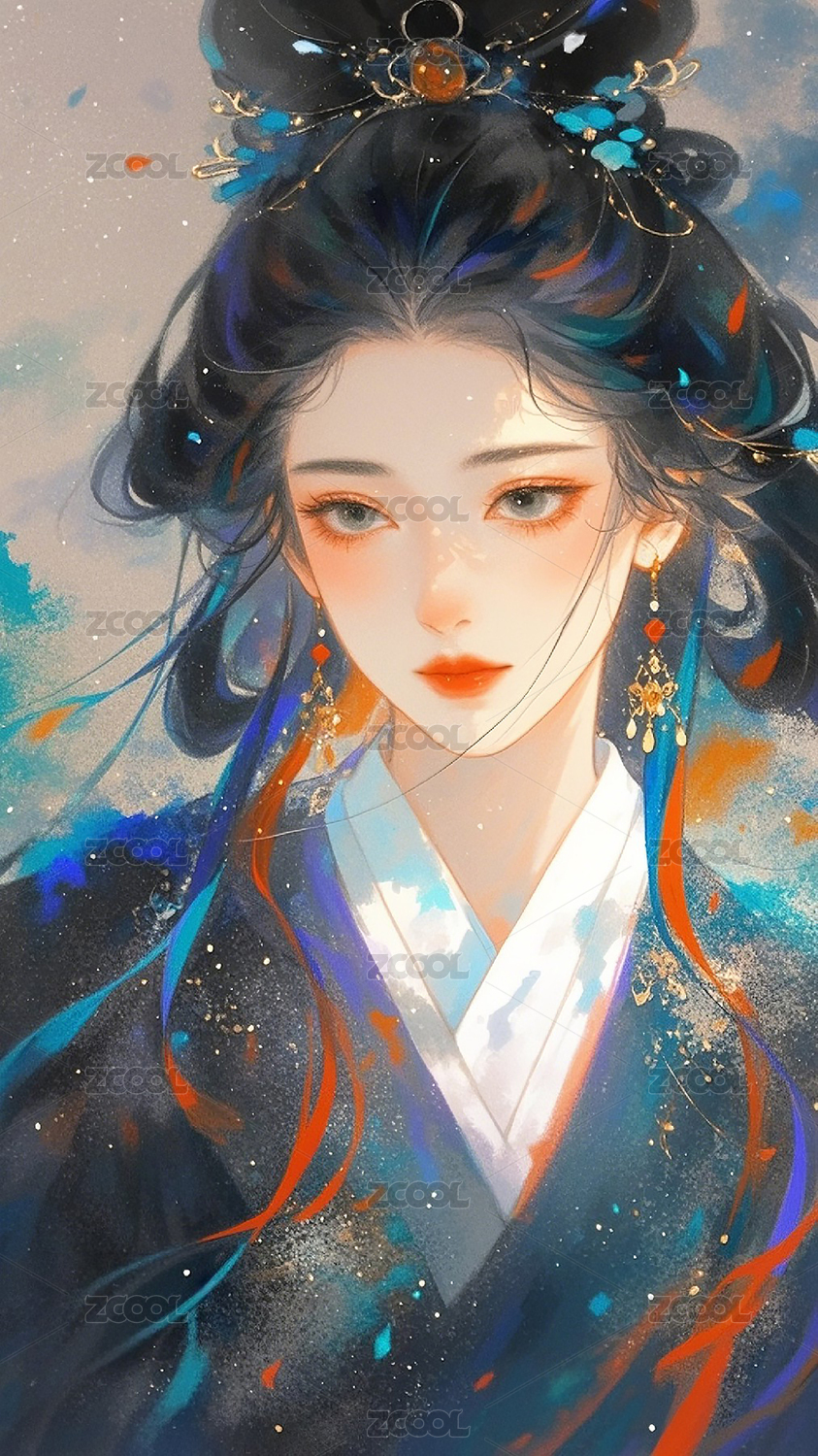 古风,女孩,少女,美女,插画,竖构图,特写,古装,汉服,美丽