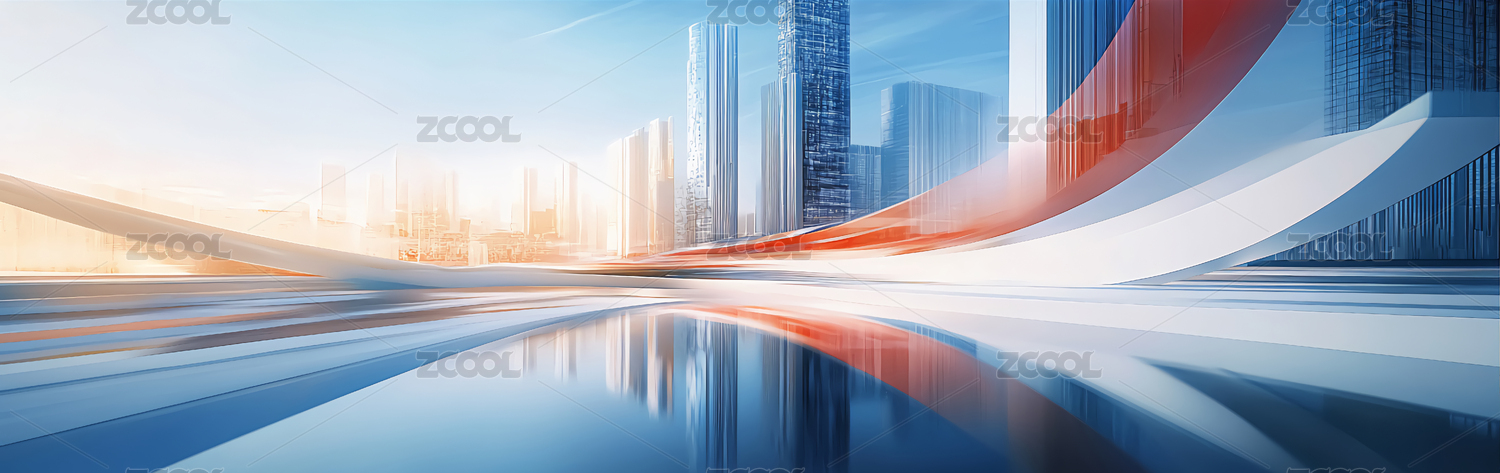 科技感未来感玻璃质感城市及优美曲线背景