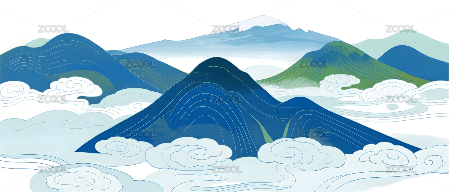 中国风山水云纹背景插画
