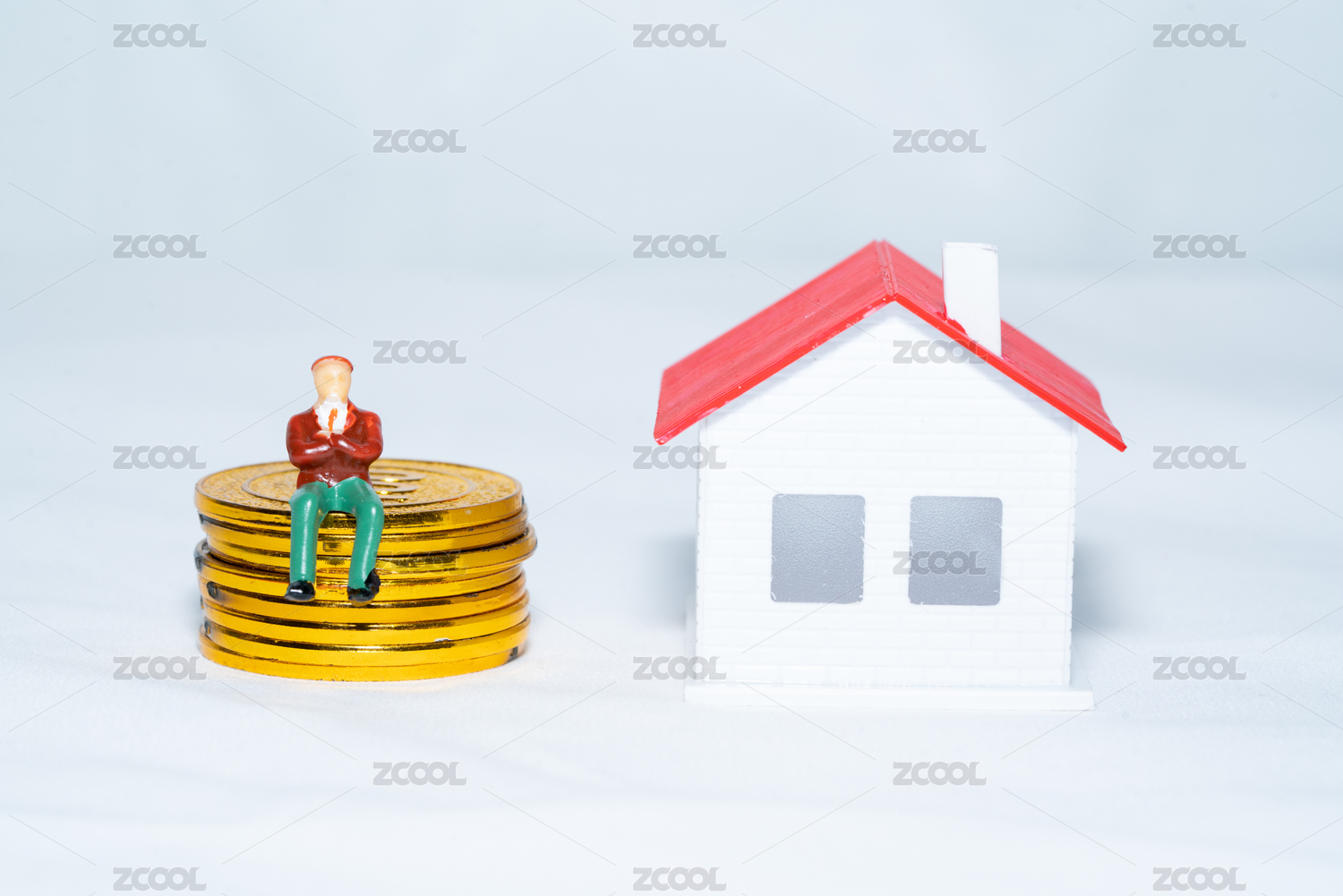 房子前的硬币和站在上面的人物