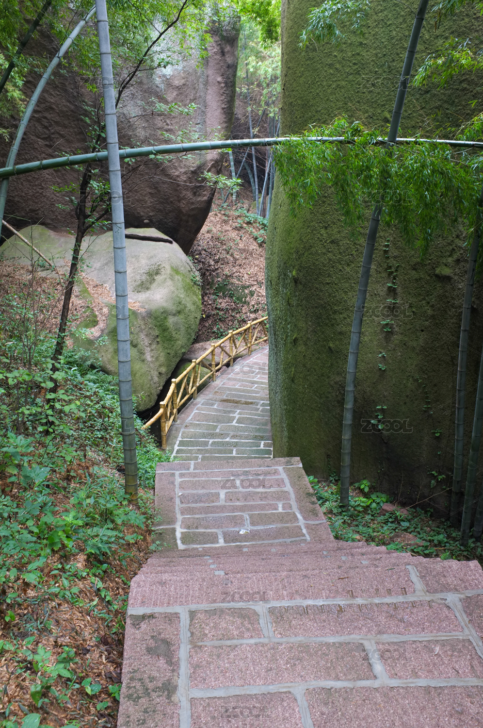 湖北南漳县翡翠峡峡谷光影下通往山谷的阶梯