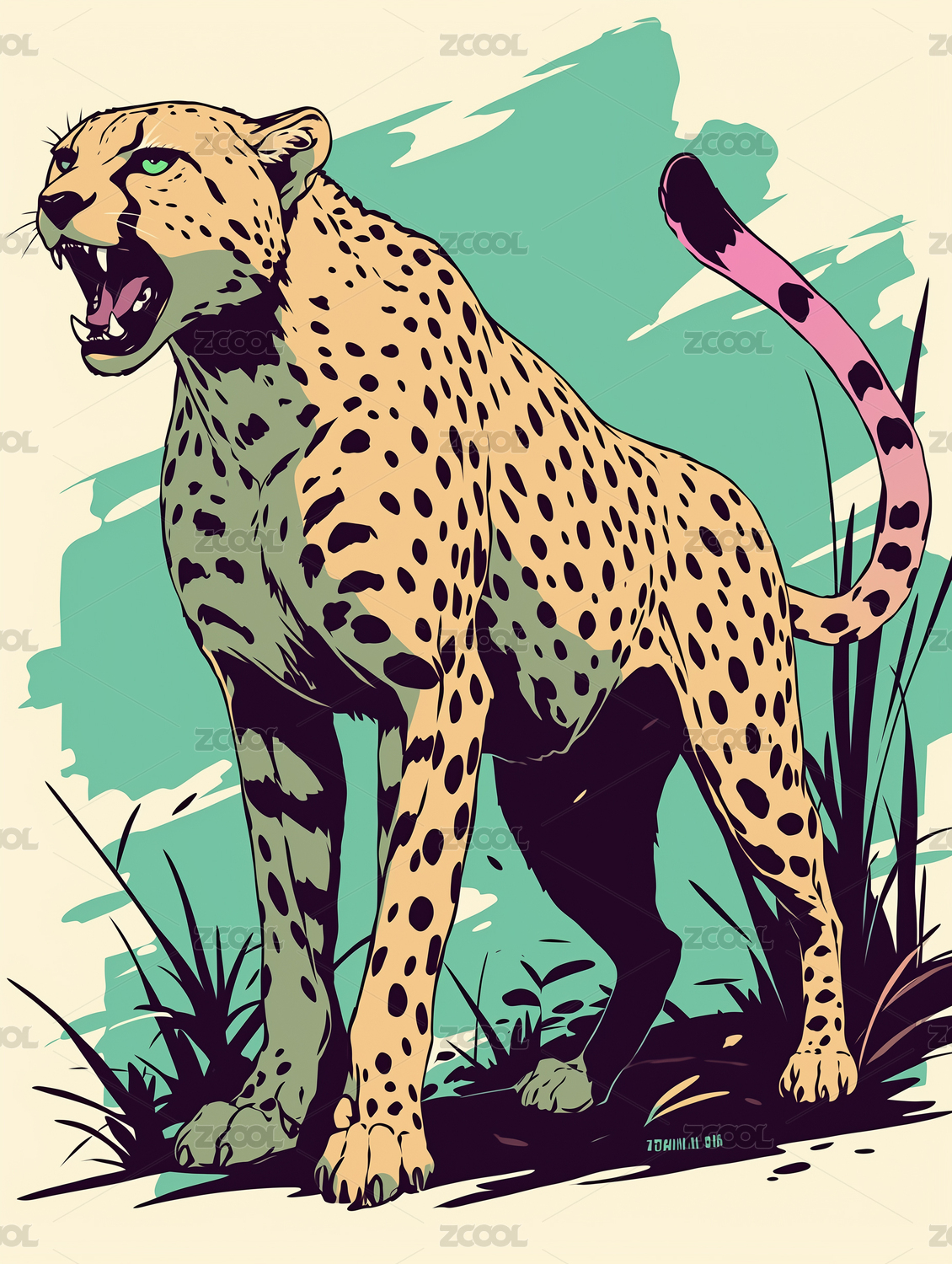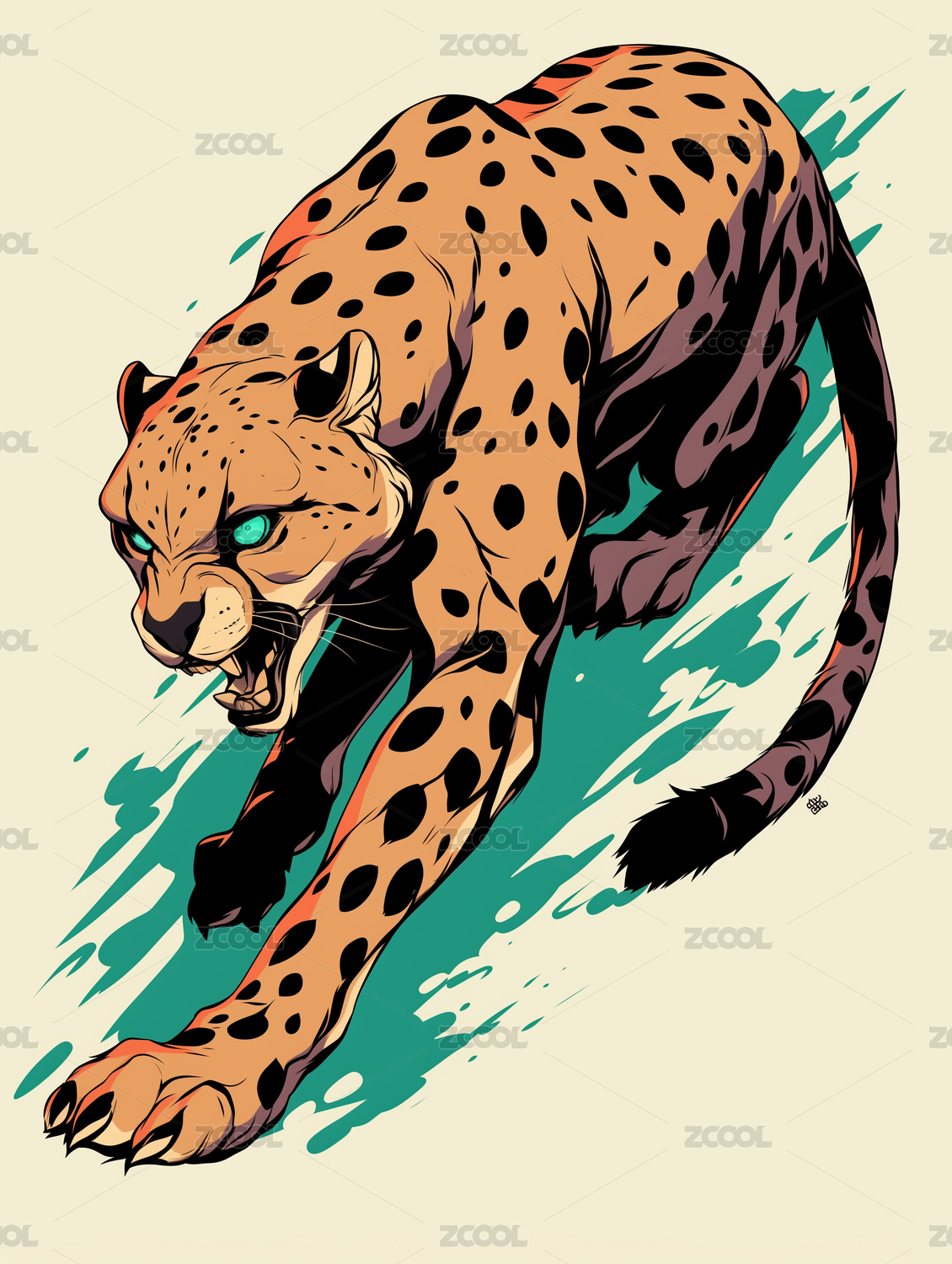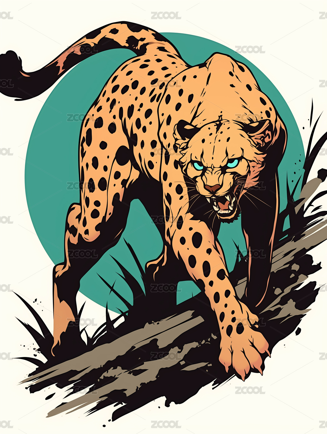 AIGCTA2024,豹子,猎豹,豹纹,插画,潮流插画,金钱豹,动物,野兽,猛兽