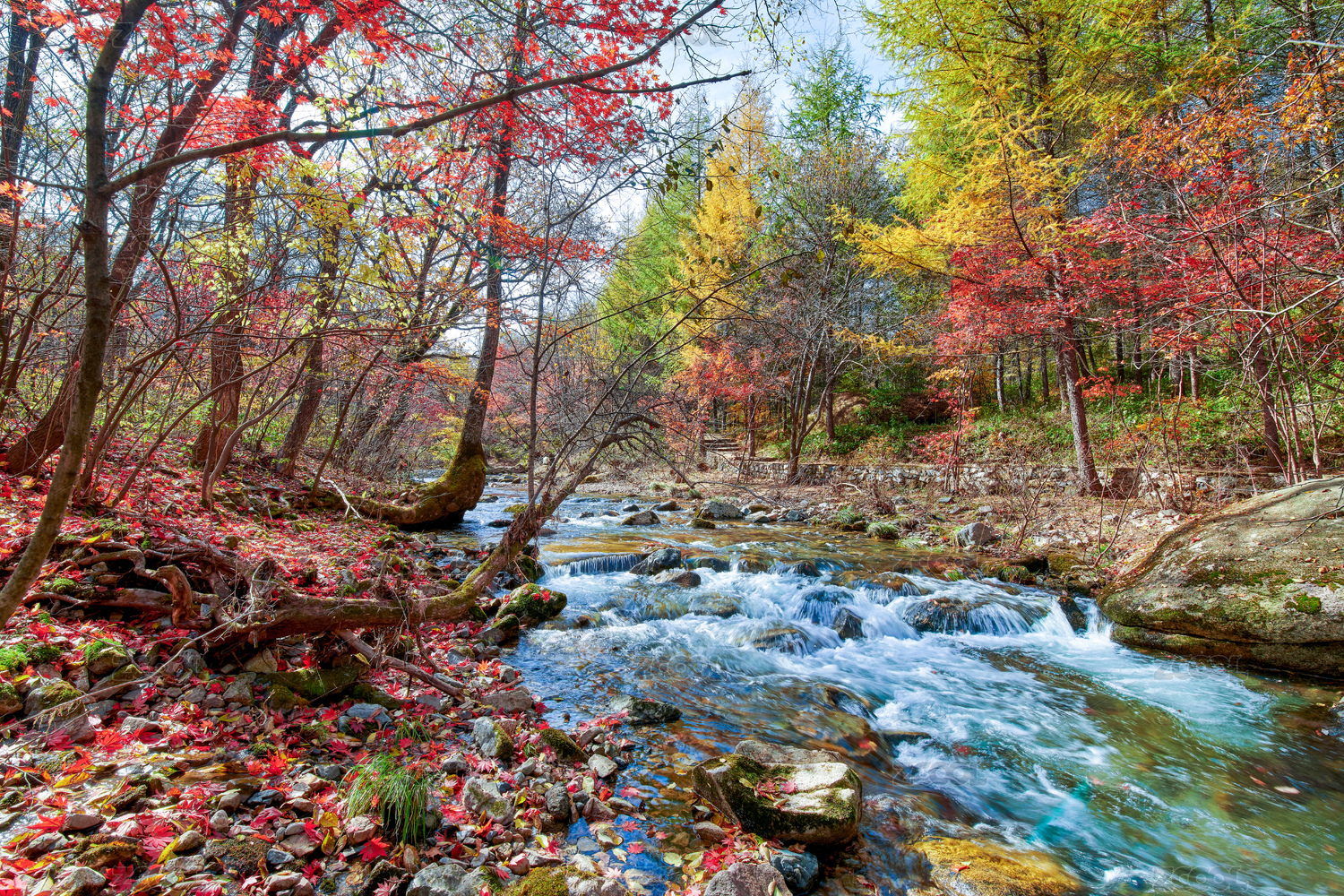 红叶流水岩石秋色