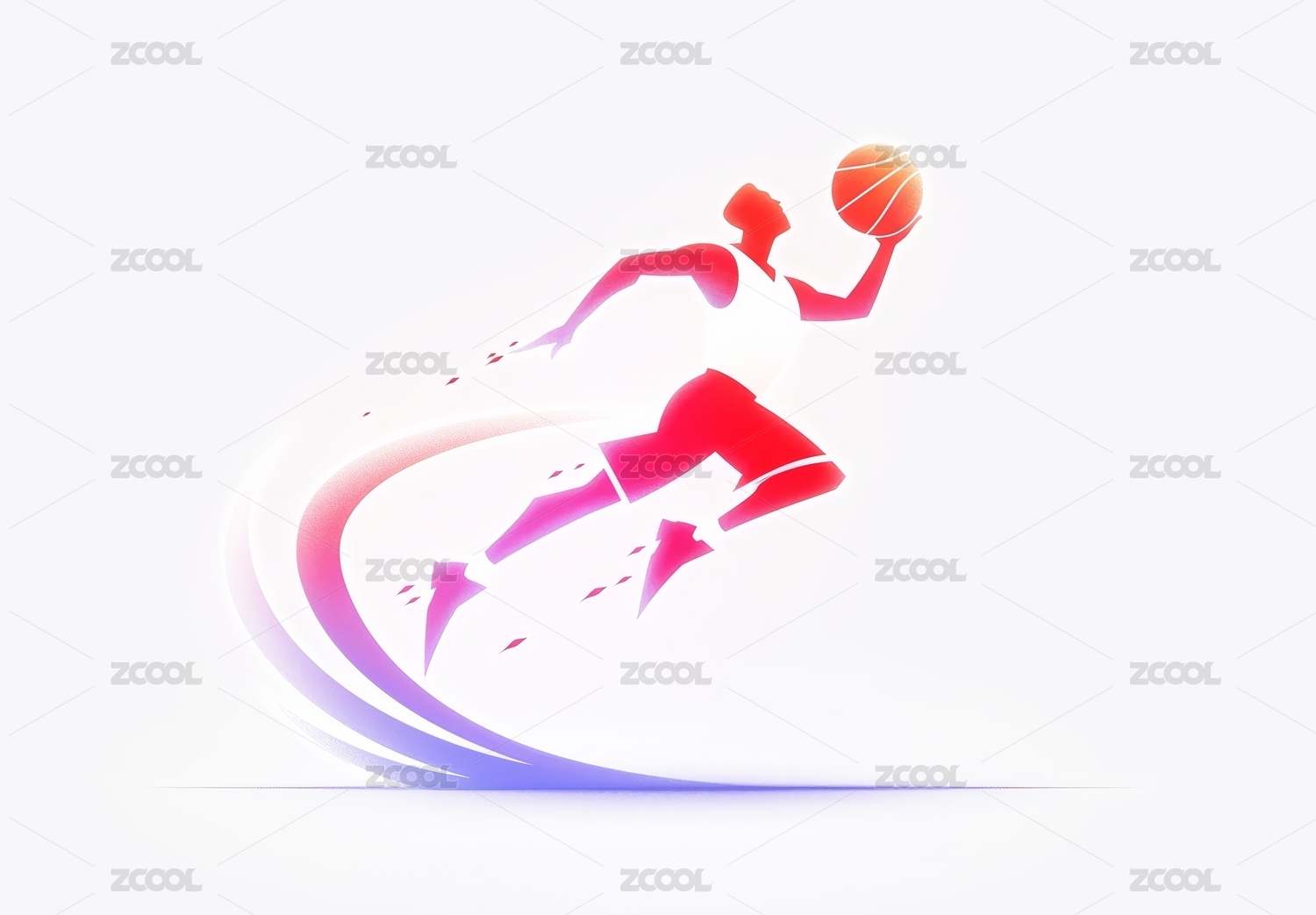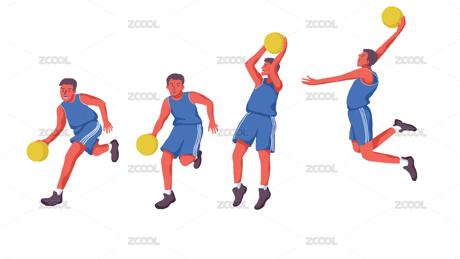 篮球运动中一组连贯运球投篮动作的手绘插画