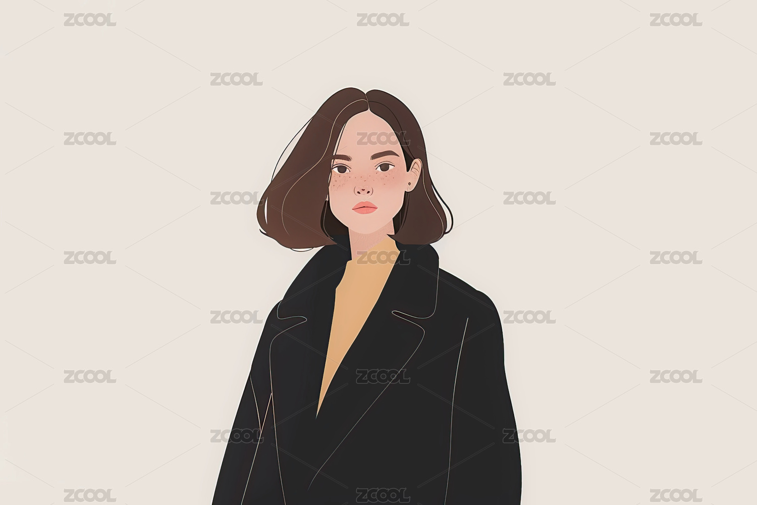 无脸,时尚,人物,模特,艺术,装饰,插画,简约,扁平,黄色