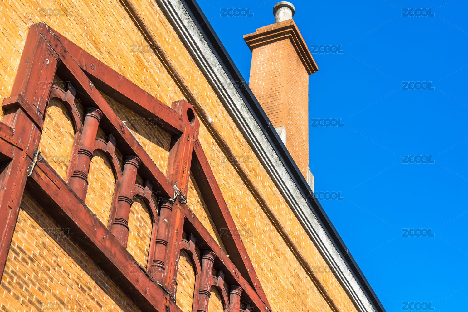 蓝天白云下的中国新疆喀什古城建筑特写镜头