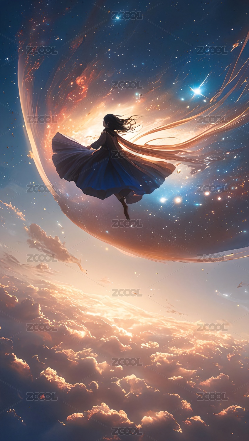 女孩,飞翔,天空,星空,星云,行星,星系,星星,太空,云