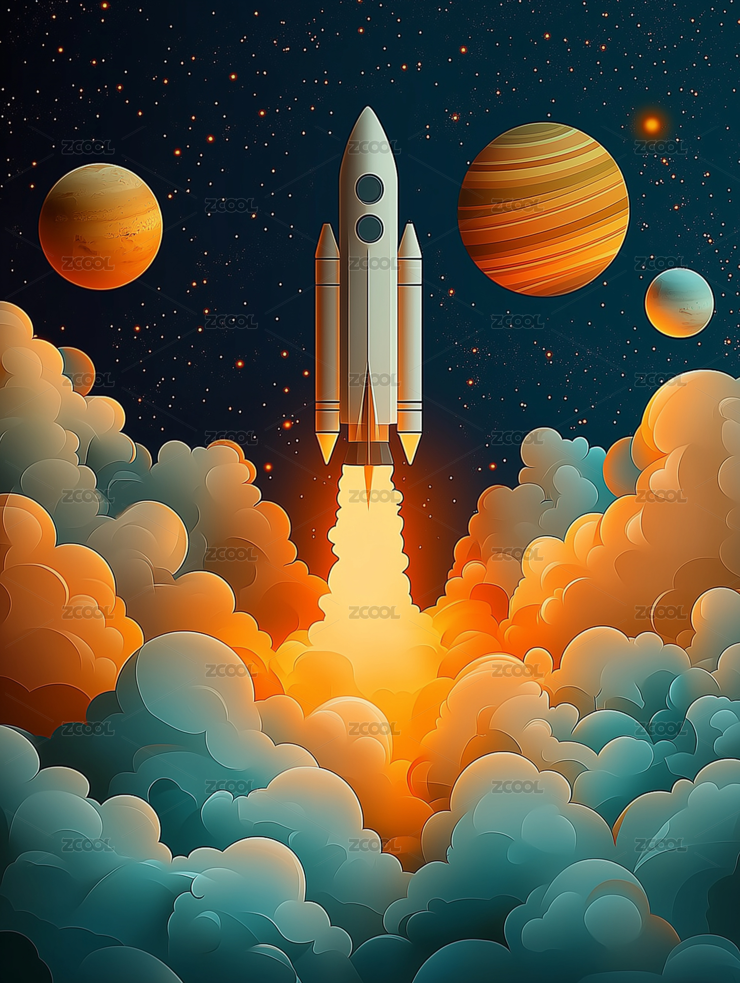 航空,火箭,运载,卫星,发射,科技,背景,夜空,星球,白云