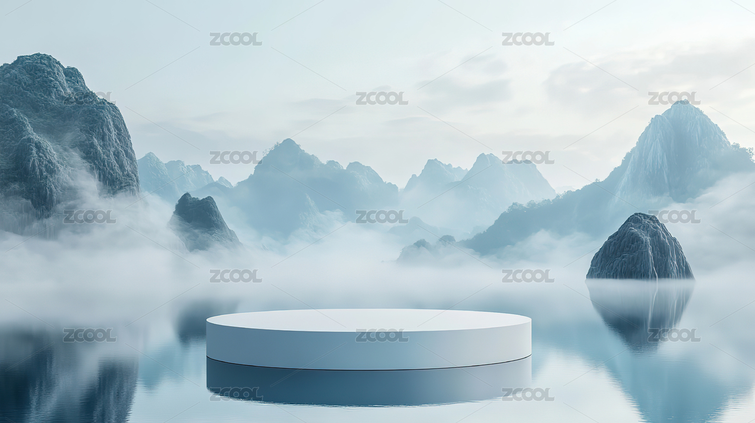 舞台,方形,三维,场景,山峰,云雾,禅宗,意境,国风,DXCZ202401