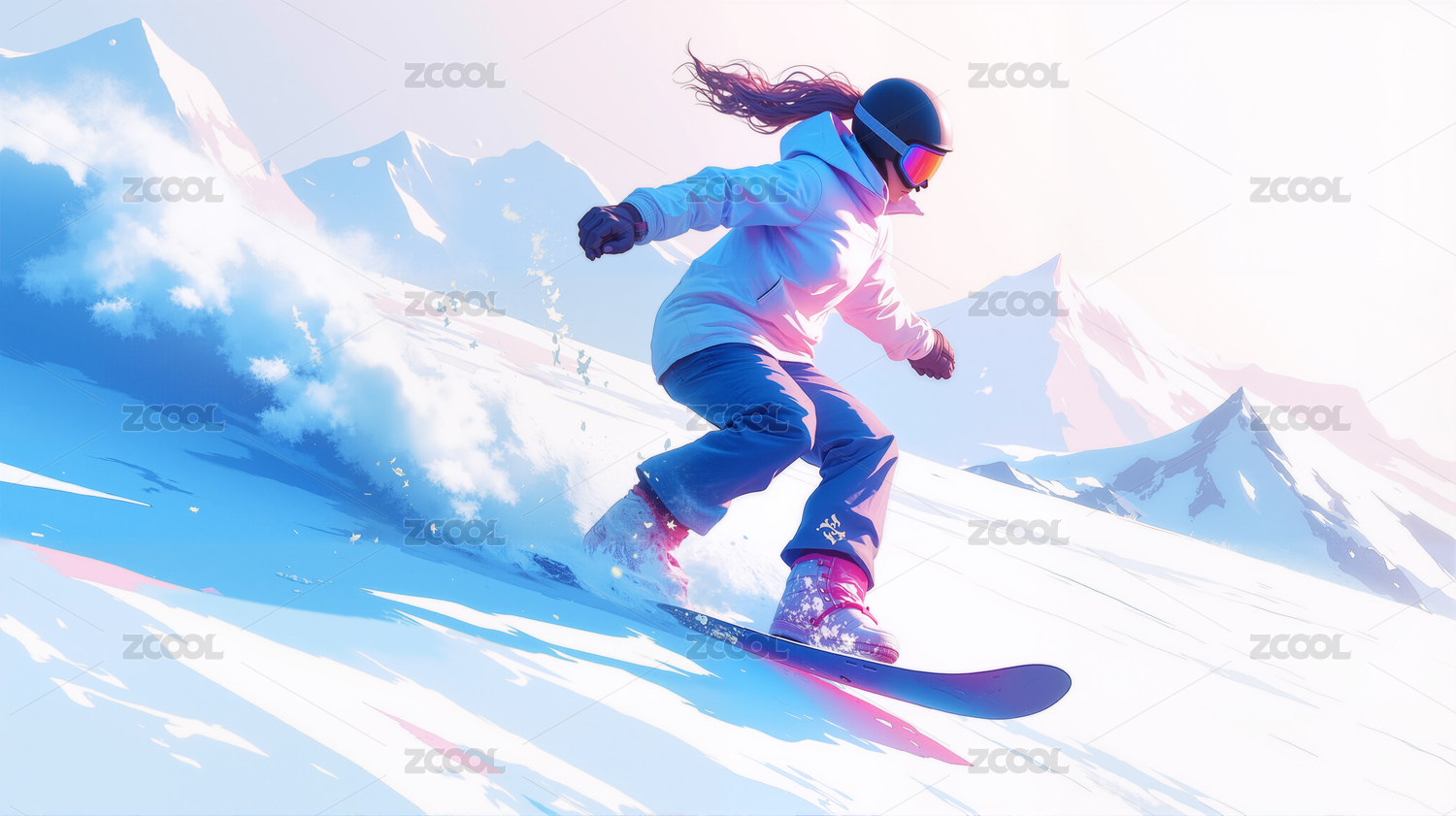 雪山飞驰滑雪少女