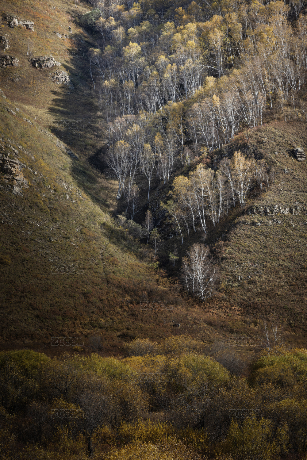 乌兰布统,蛤蟆坝,秋景,秋色,秋季风光,秋天,晴天,阳光,光线,树林