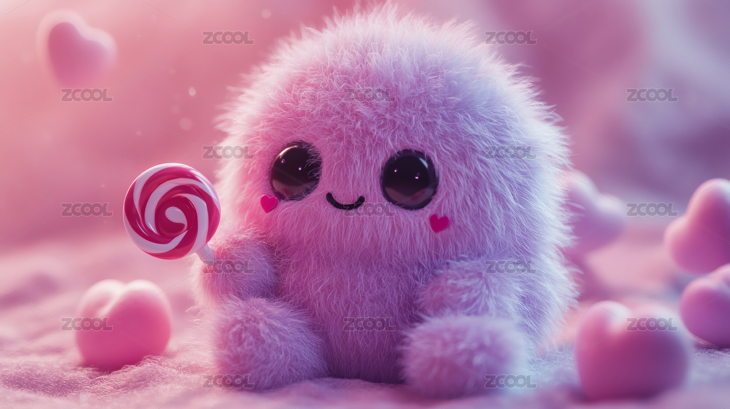 享受糖果的粉色小怪兽