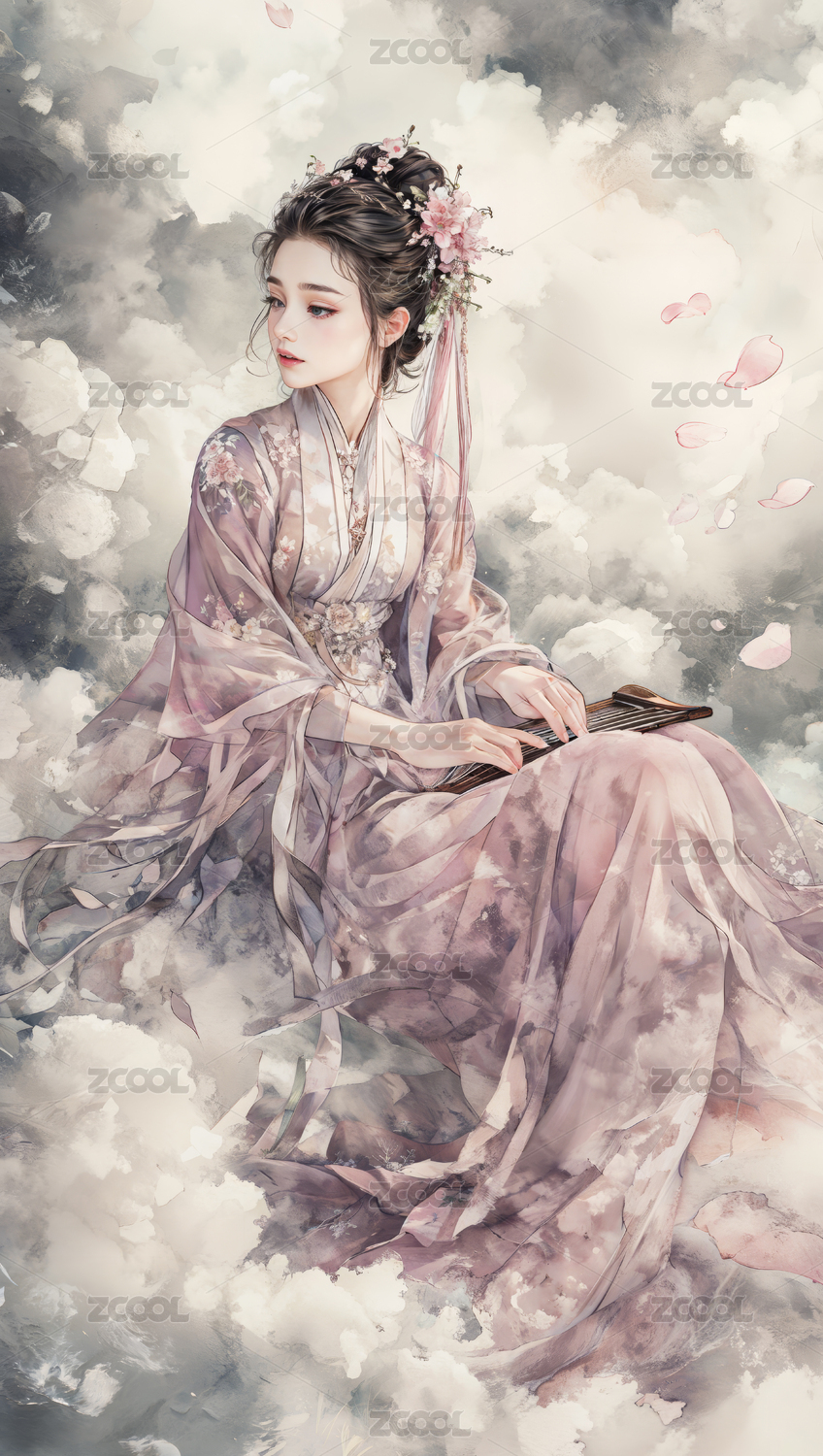 在云朵里弹琴的古代美女