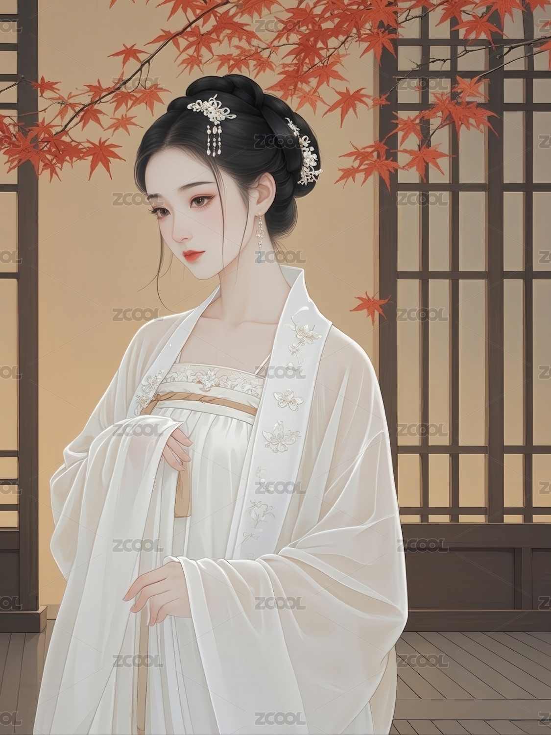 国风古代女子插画图