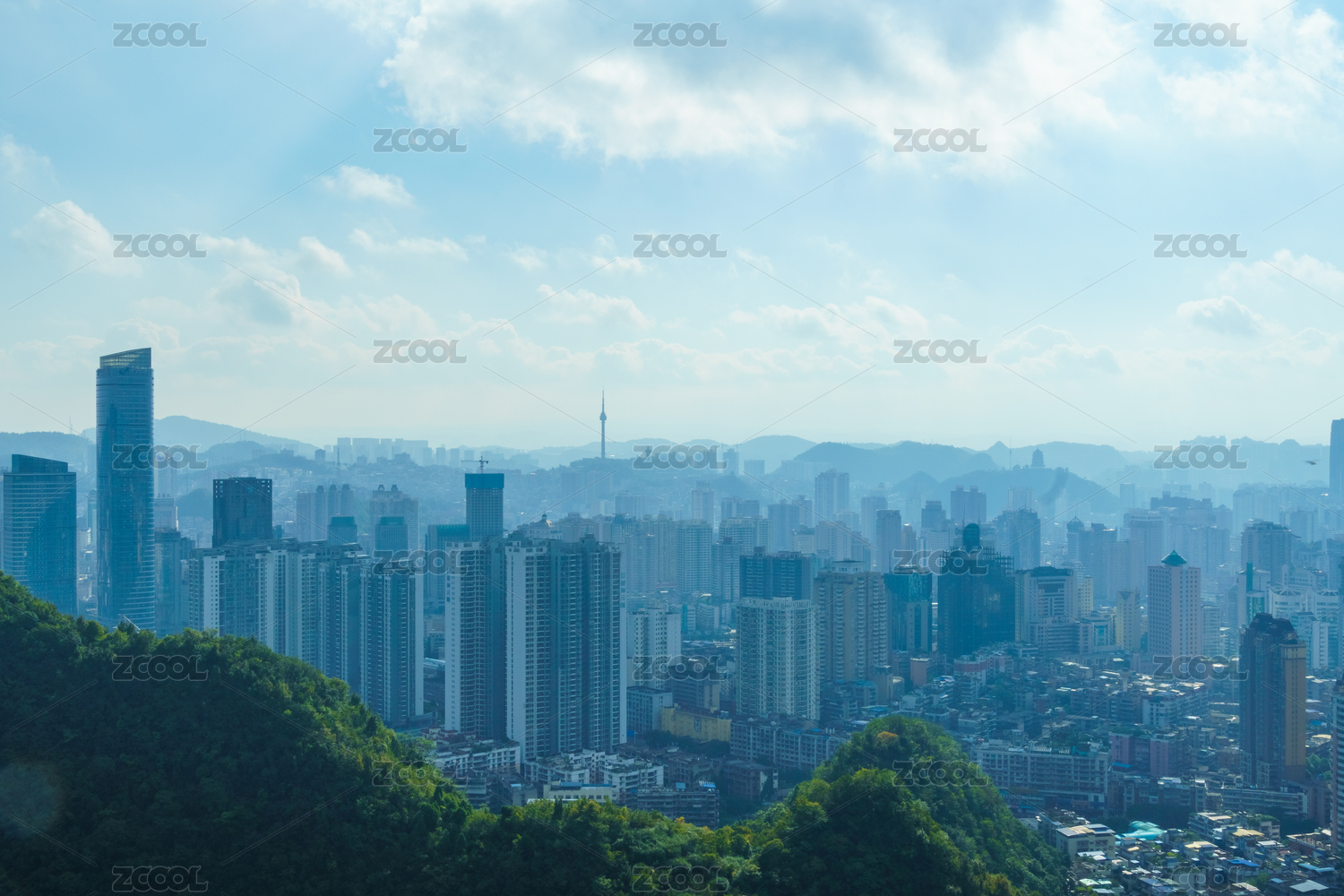 中国贵州贵阳黔灵山和城市天际线
