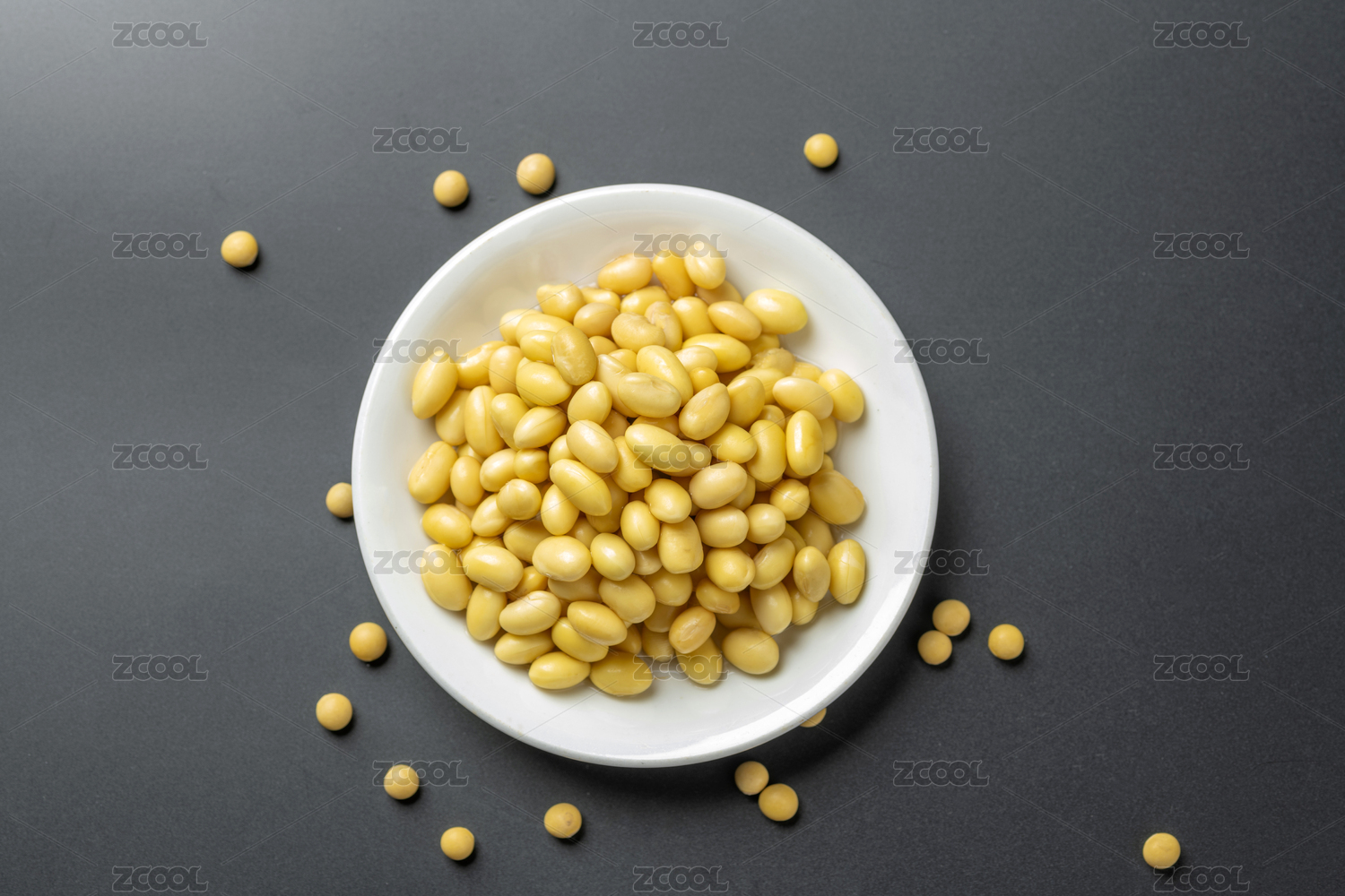 白色桌面上有一碗黄豆