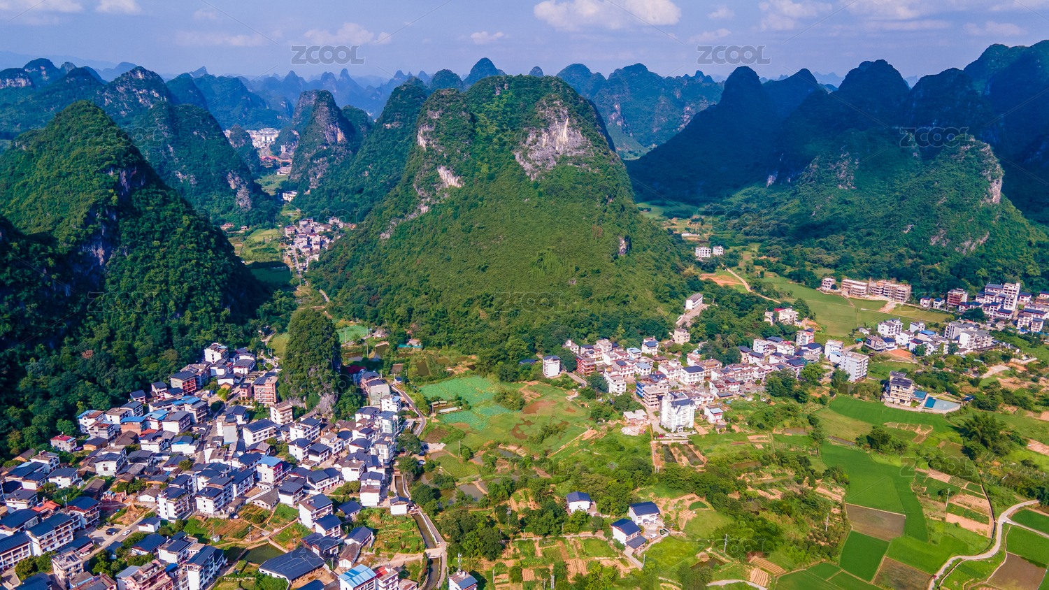 广西钟山县百里水墨画廊喀斯特峰林风光美