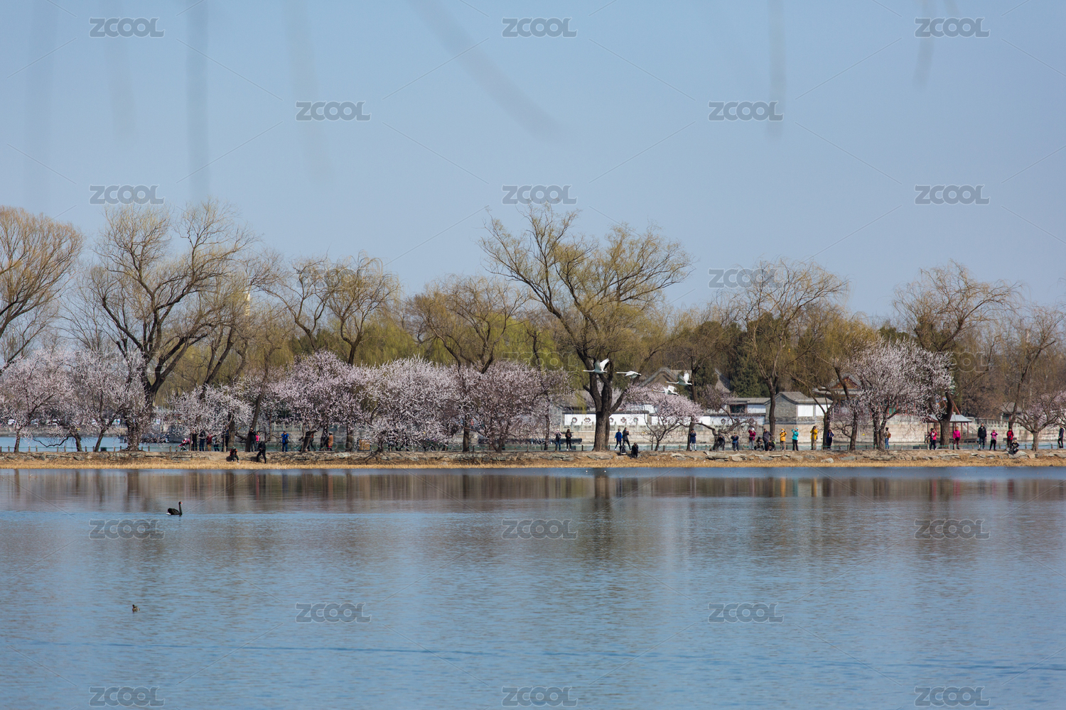 北京颐和园公园春季桃花湖水西堤传统古建筑