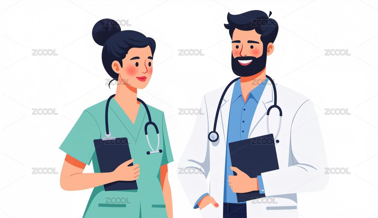 人物,插画,平面,色块,极简风,手绘,纯色背景,扁平,医生,听诊器