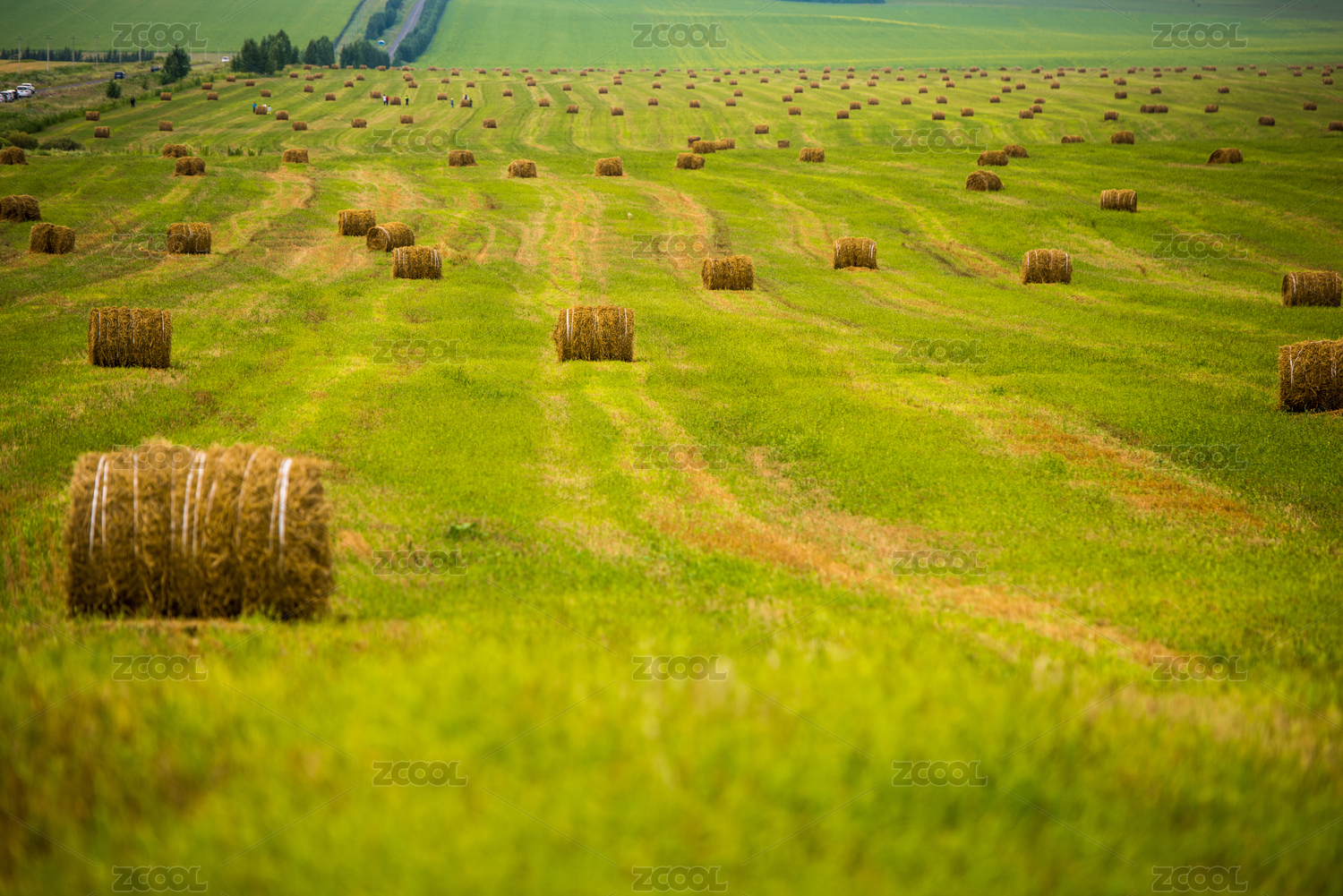 内蒙古呼伦贝尔草原上的亩茬地和干草卷