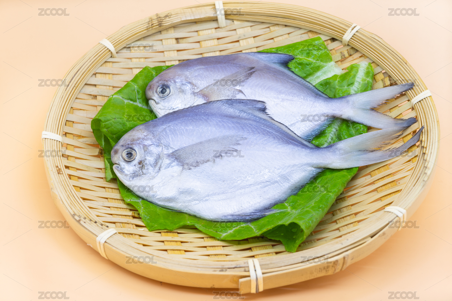 塑料保鲜盒里装着的蔬菜和鲳鱼