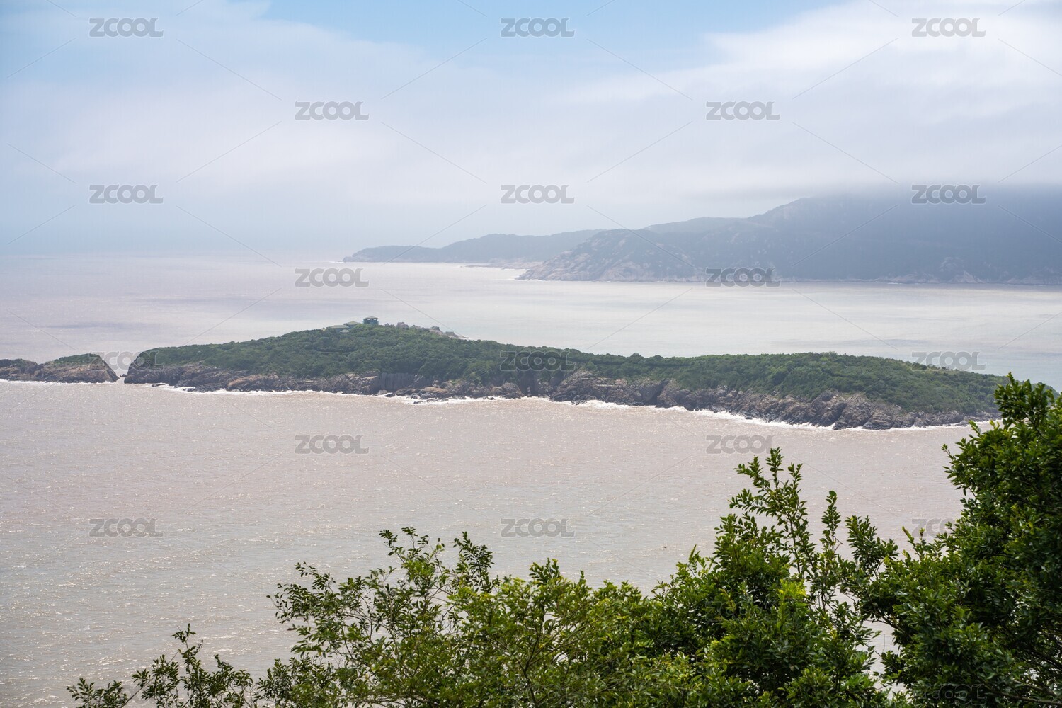 从高处远眺中国浙江舟山海边风光