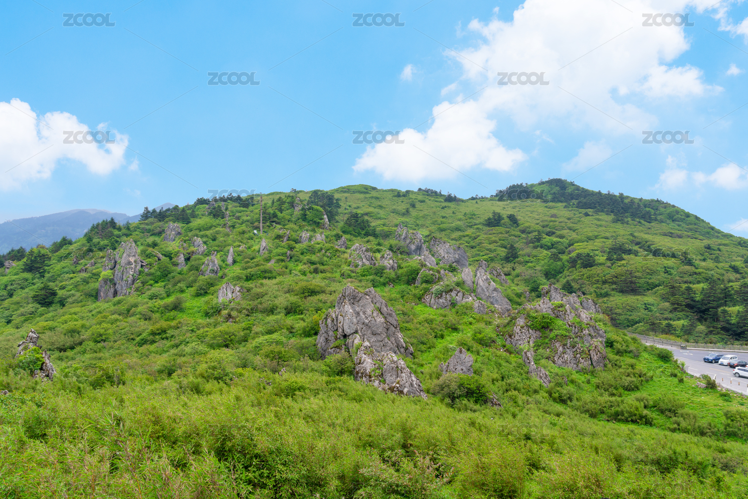 山,山坡,杂草,草,苇子,生命力,石头,蓝色,天空,白色