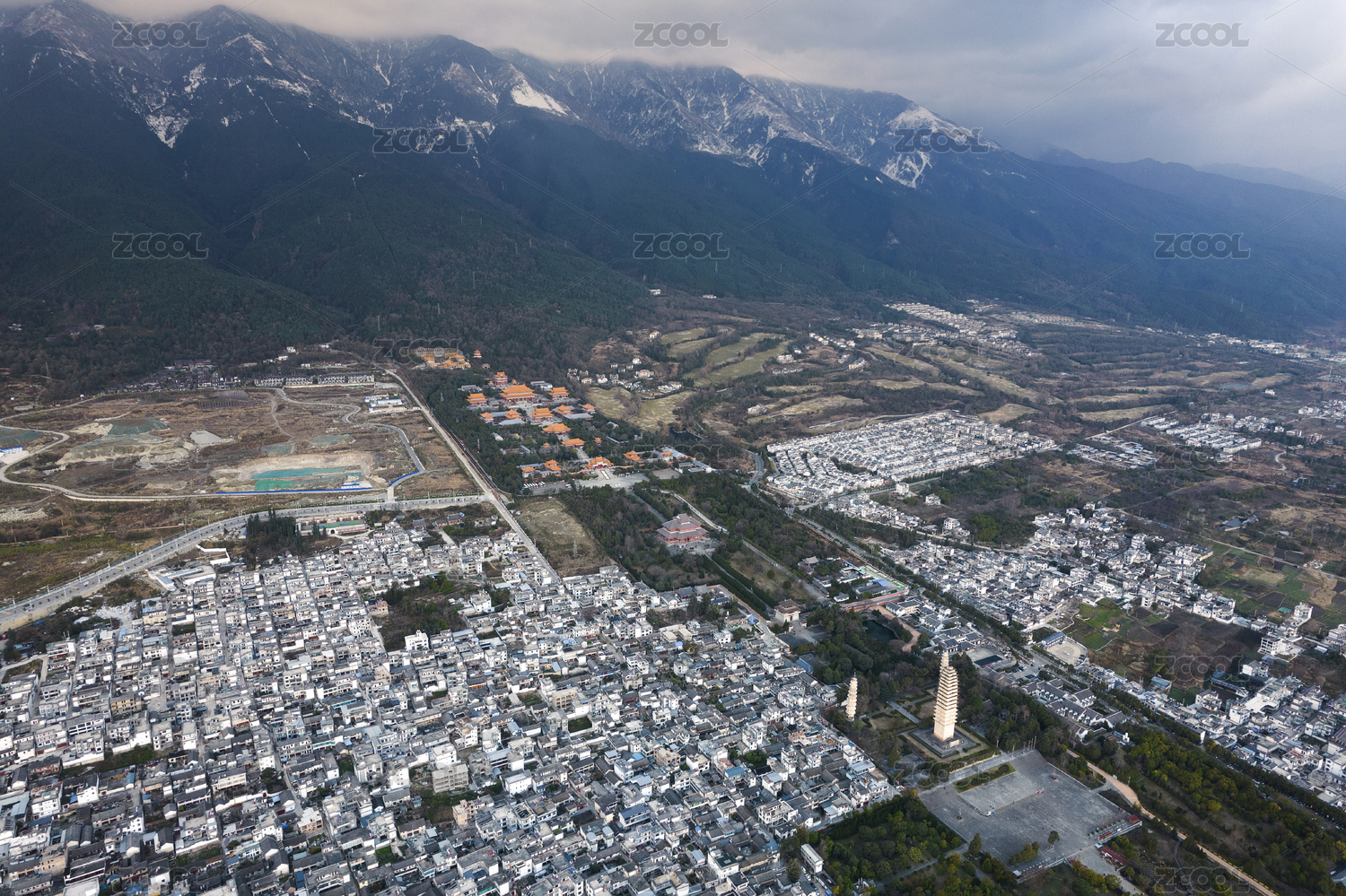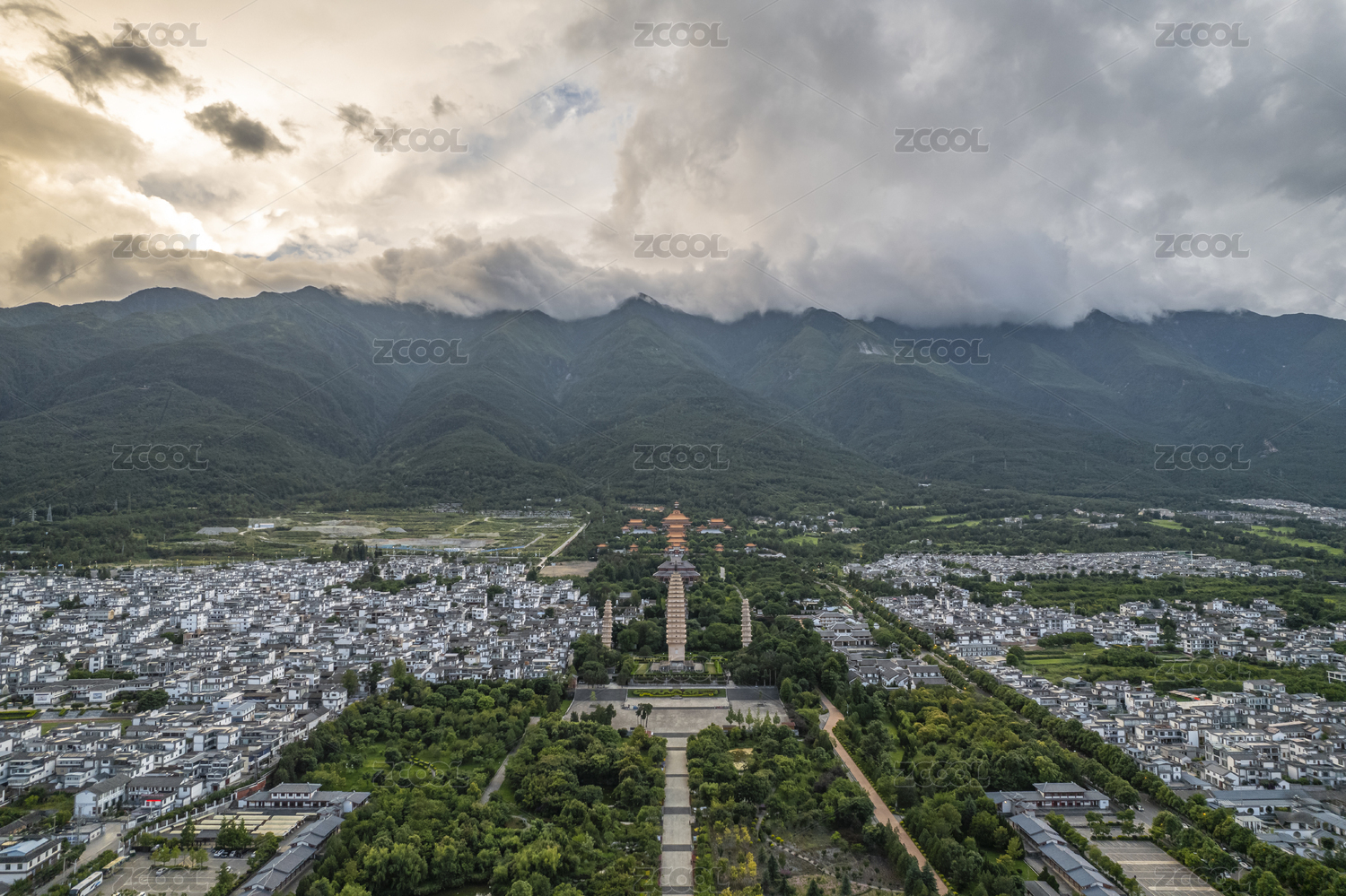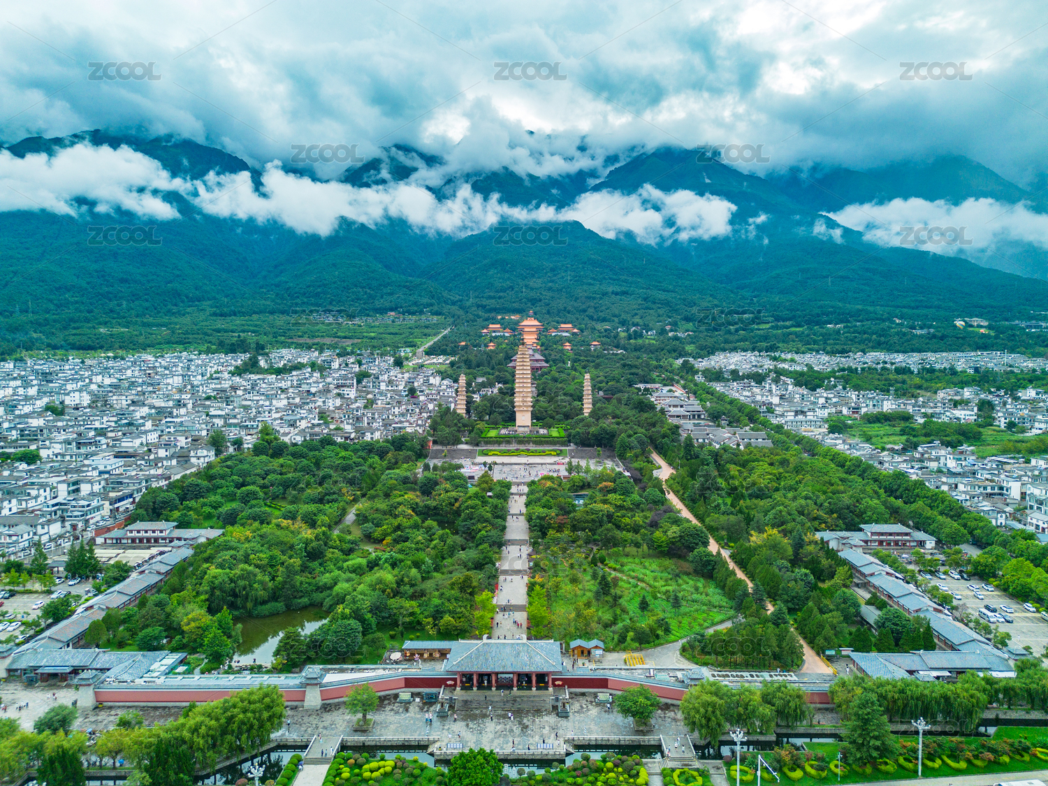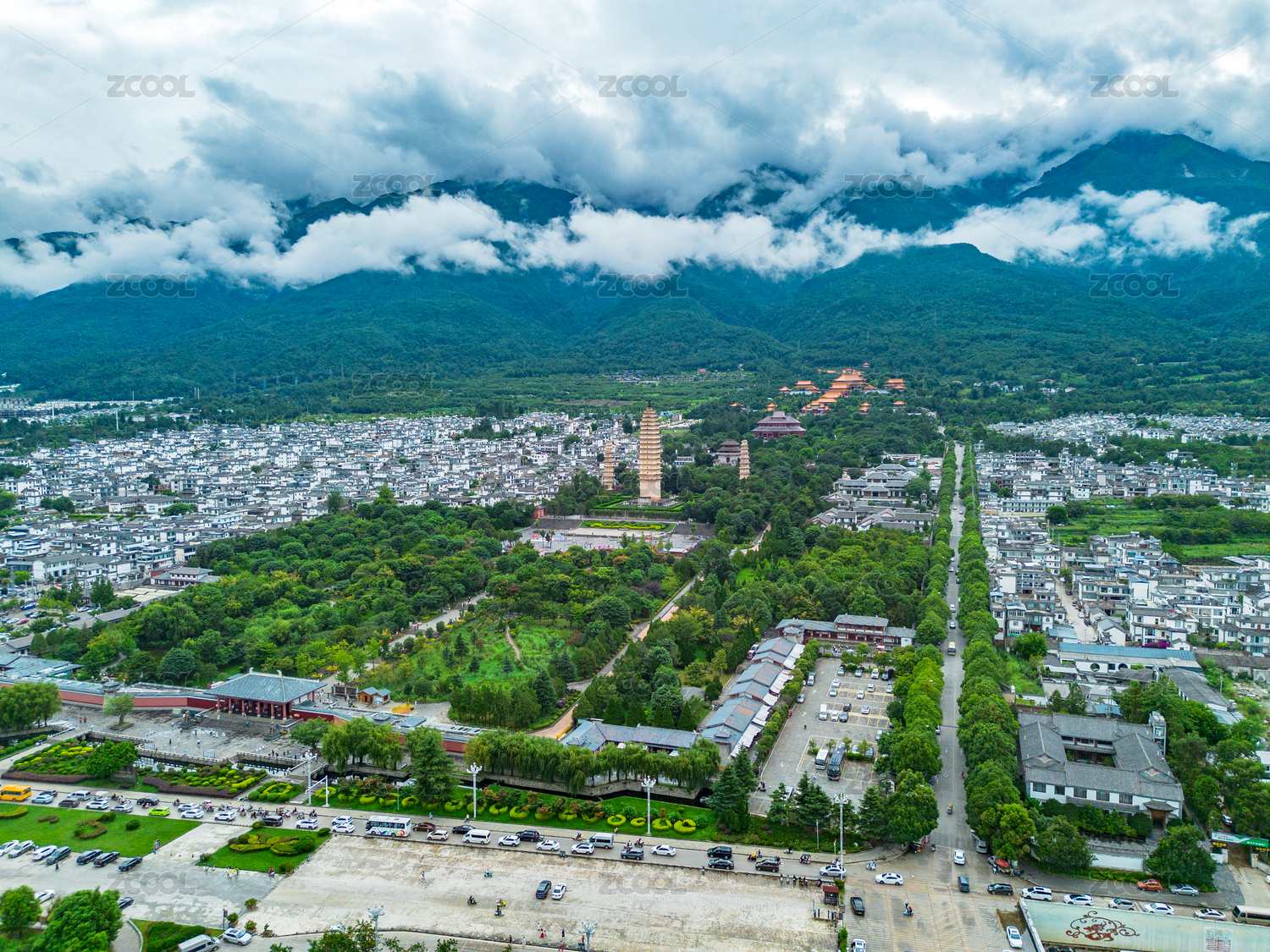航拍云南大理古城5A旅游景点崇圣寺三塔