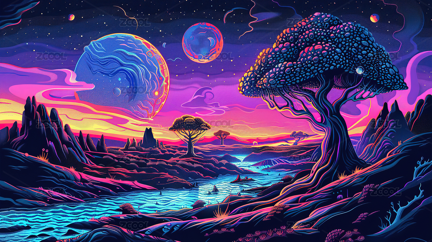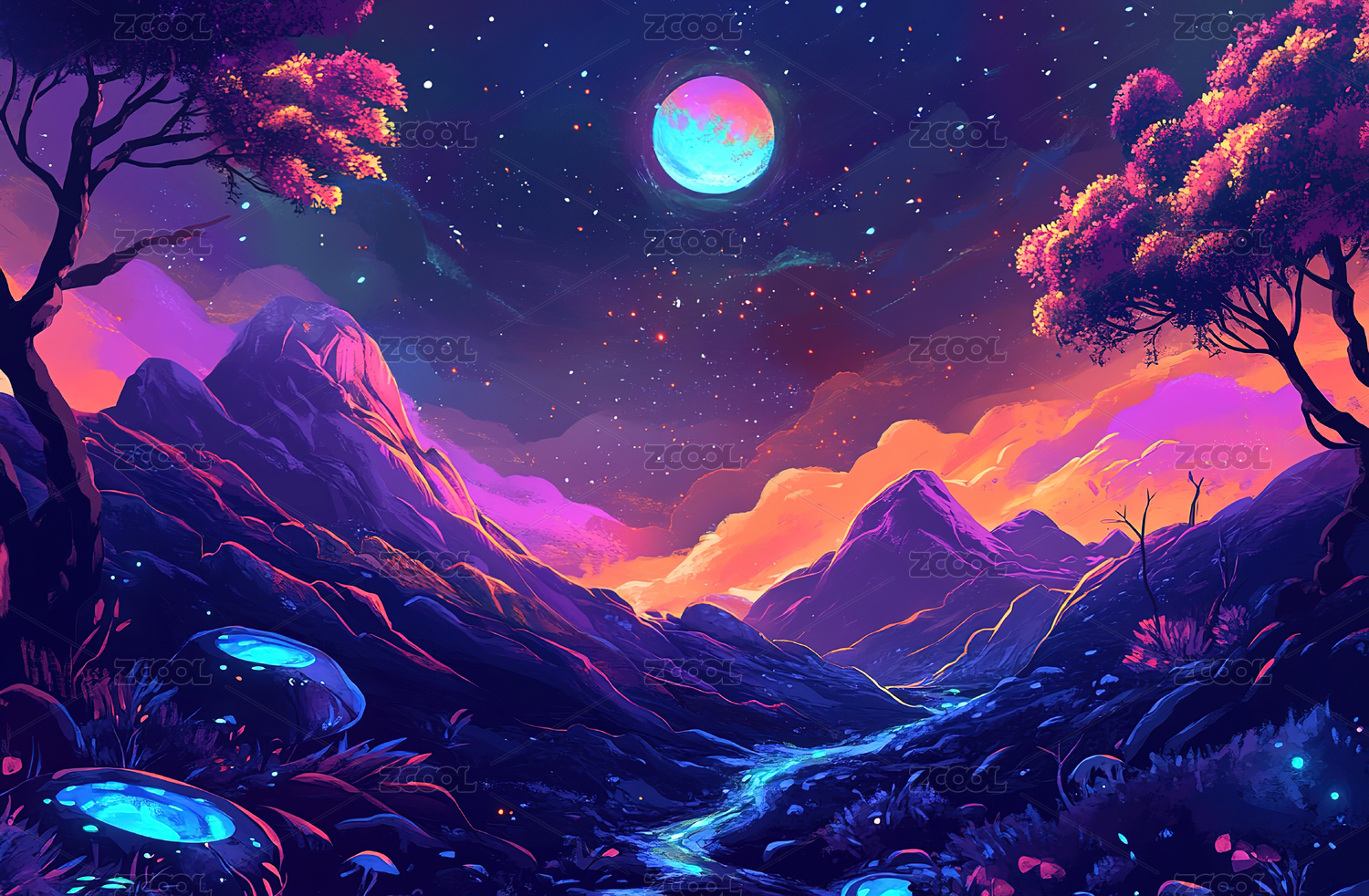 天空,风景,户外,自然,自然美,日落,云,插画,宁静,树