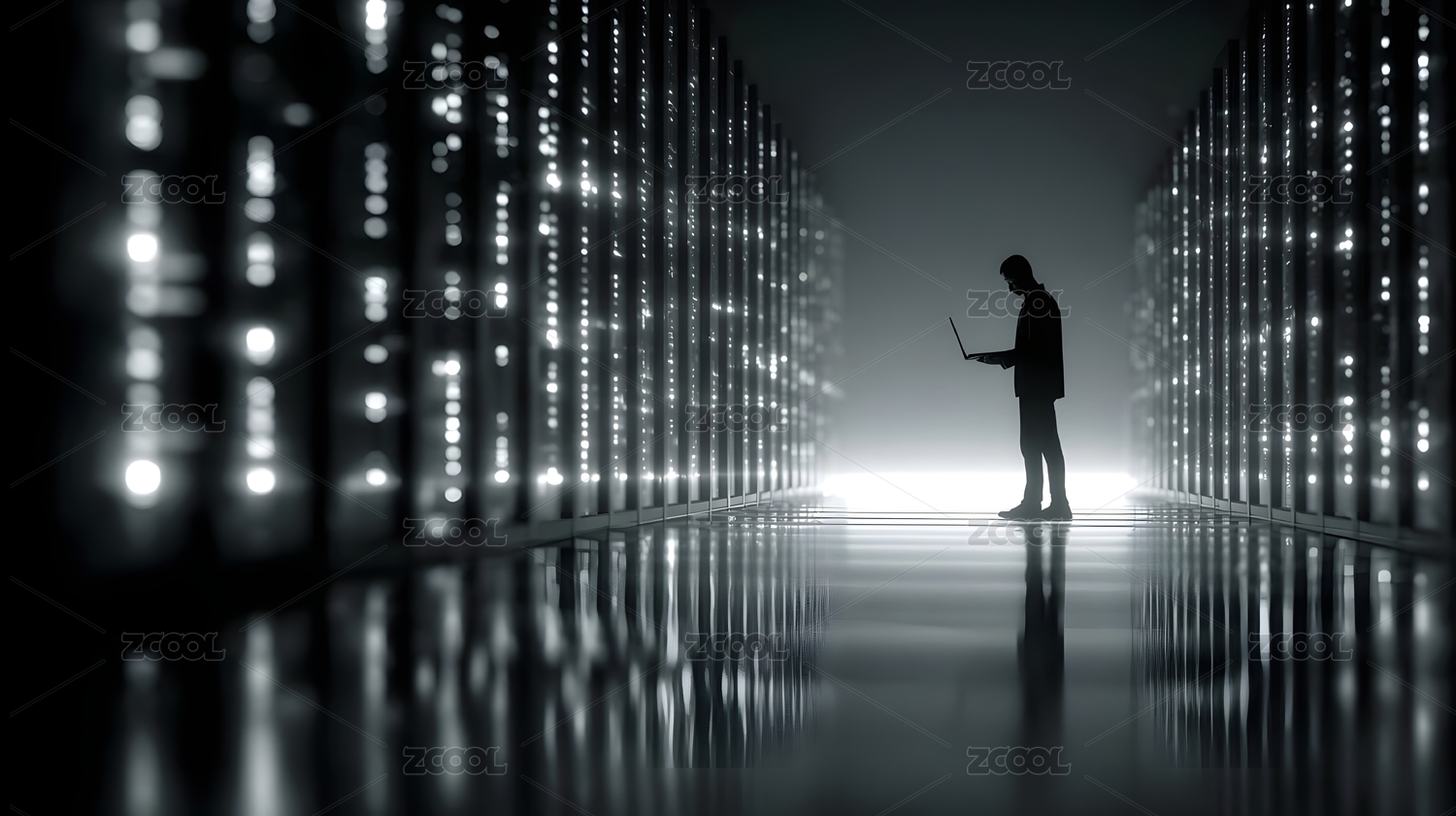 科幻数字隧道中的黑西装人